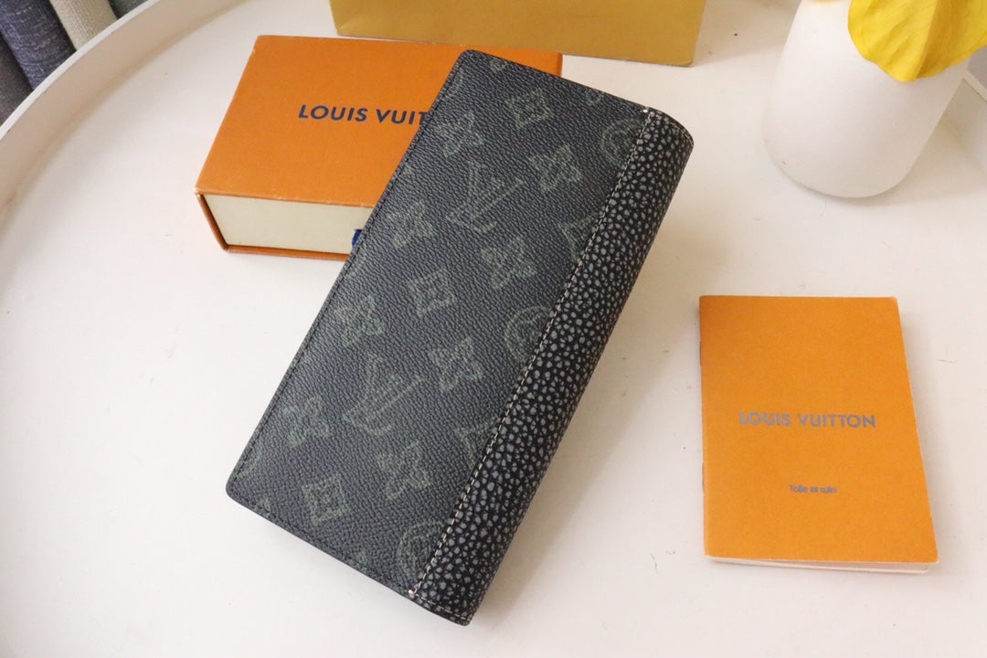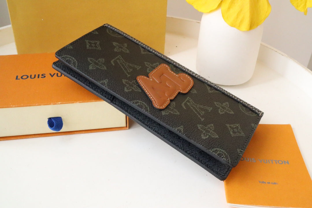 LV Logo Brazza Wallet Dark Green Monogram Floral Canvas 182774