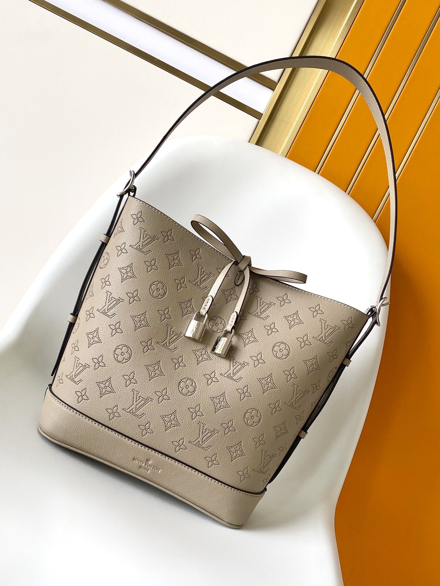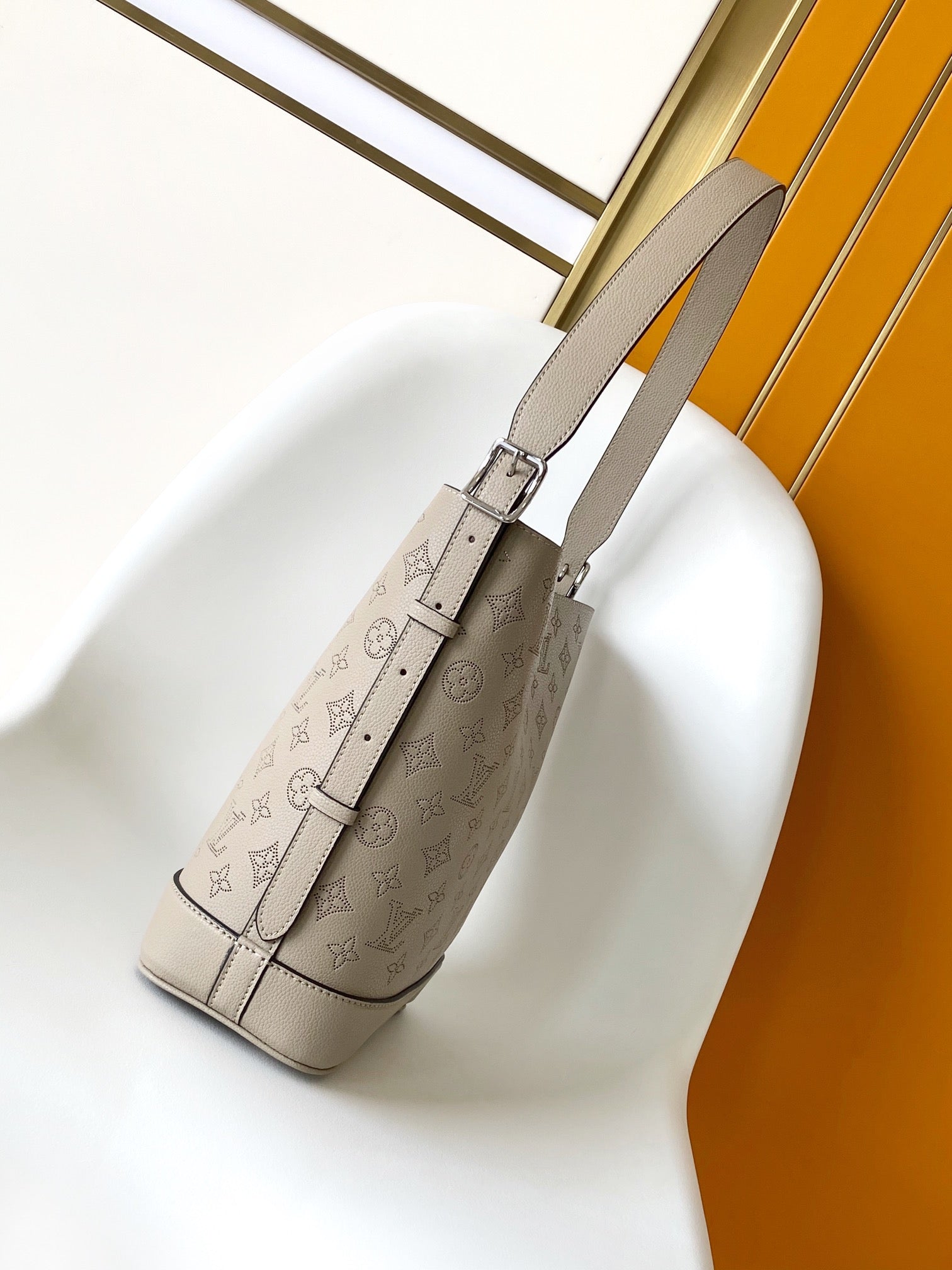 LV M12140 Flore Handbag 28cm Galet Gray Monogram Perforated Cowhide