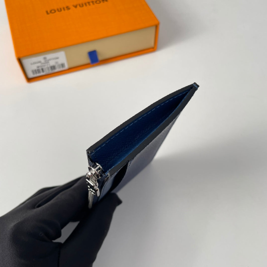 LV M30271 Coin Card Holder Blue Monogram Canvas 221508