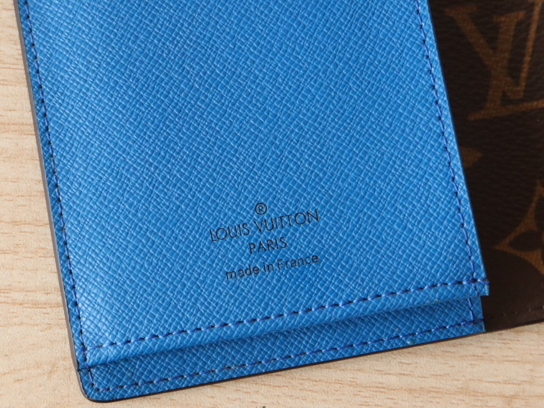 LV M81538 Brazza Wallet Blue Monogram Canvas & Calfskin 224094