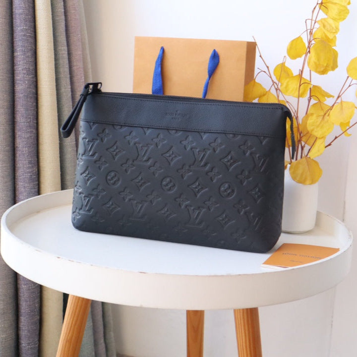 LV M82545 Embossed Takeoff Pouch Black Monogram Shadow Cowhide 179421