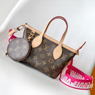 LV Neverfull BB Bag 24cm Brown Rose Red Monogram Canvas & Cowhide