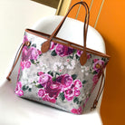 LV Neverfull MM Tote 31cm Sliver Pink Floral Pattern Leather GHW