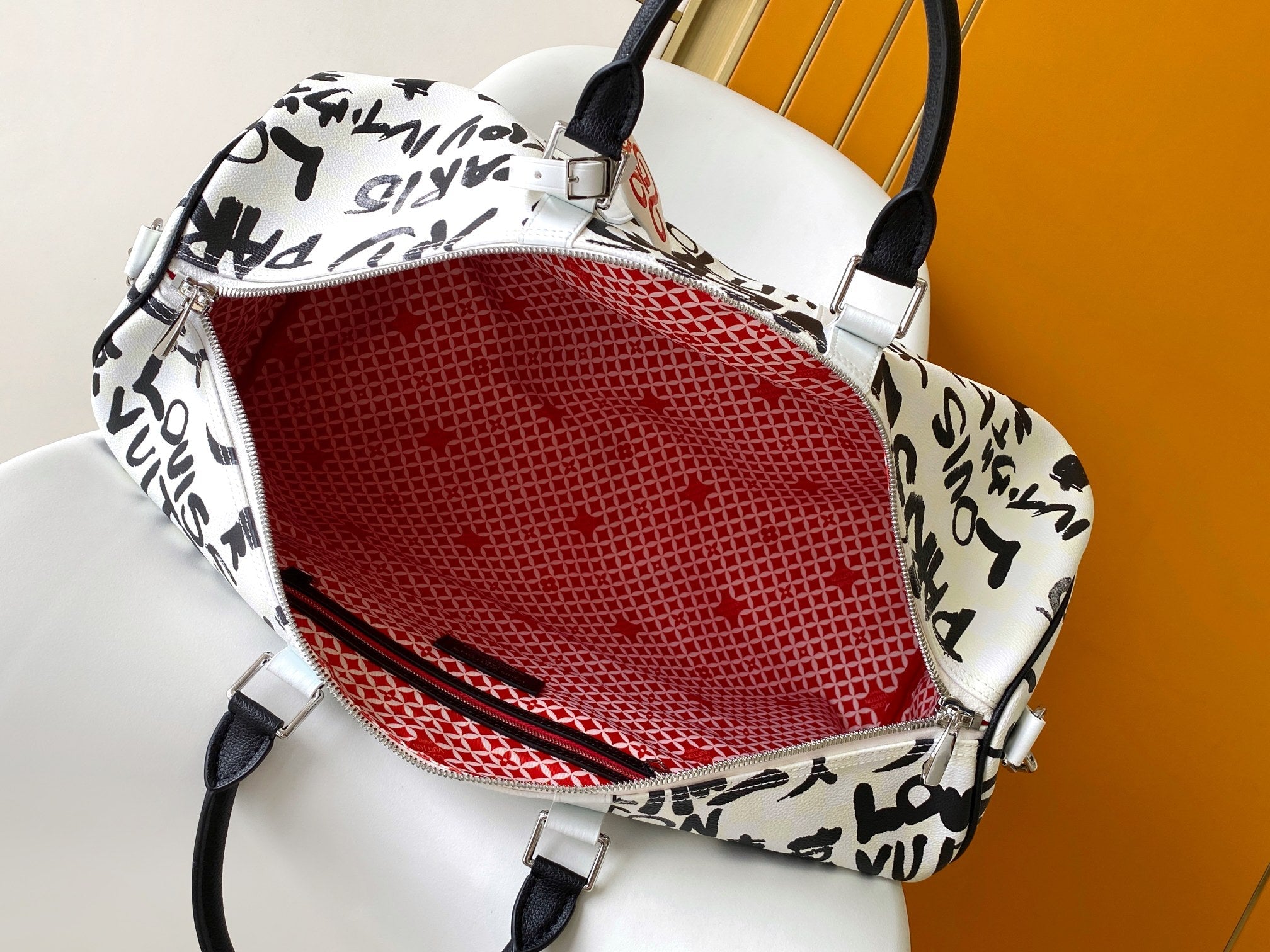 LVx N&PW Keepall Bandoulière 50 Black White Cowhide