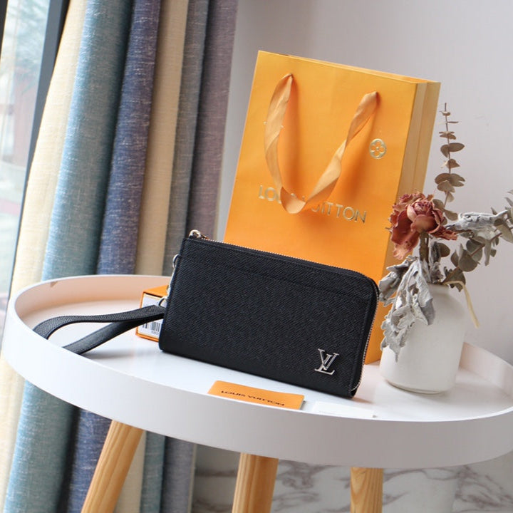 LV Dragonne Zipper Wallet Black Taiga Leather 179404