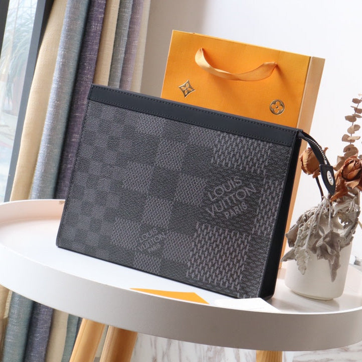 LV M61692 Pochette Voyage MM Black Monogram Canvas 224237