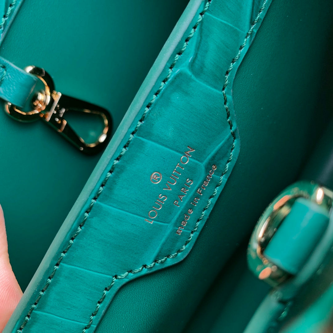 CAPUCINES MINI 21 GREEN CROCODILE EMBOSSED CALFSKIN GOLD HARDWARE
