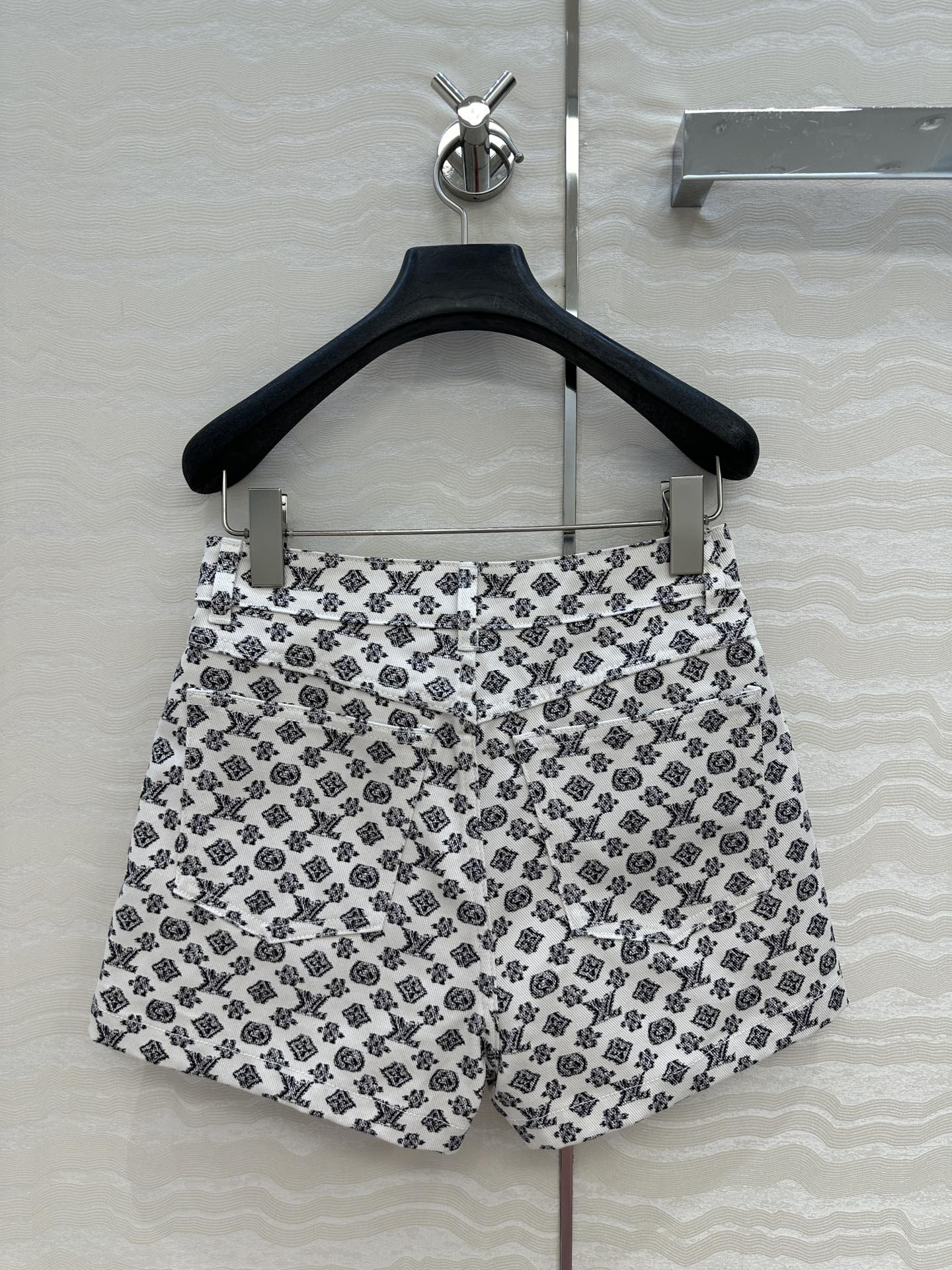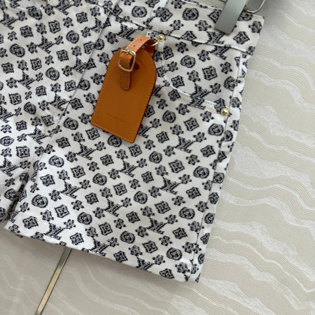 LV 25 Advanced Logo Denim Shorts Black White Poliester