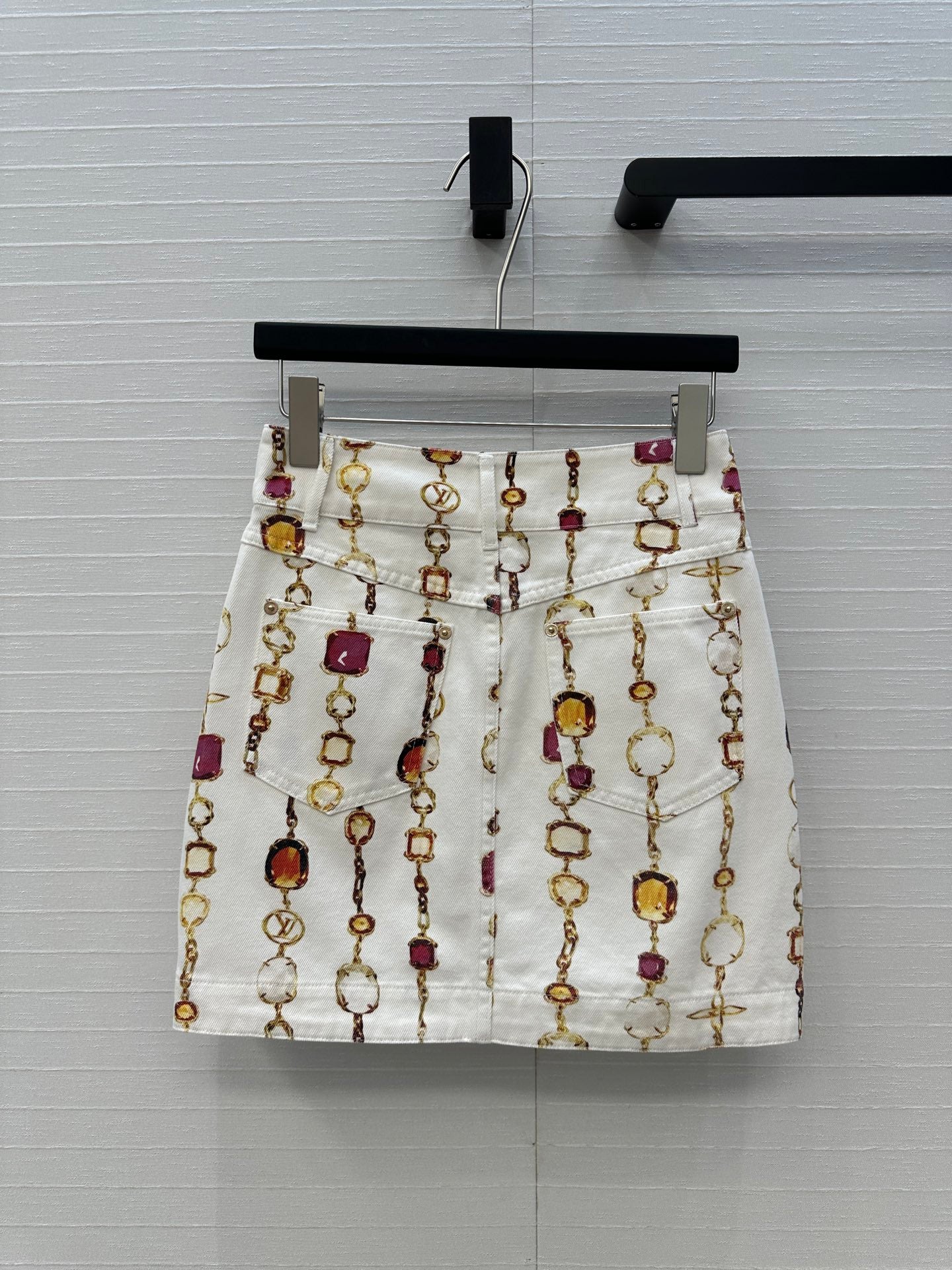 LV 25 Bourgoise Series Printed Zipper Denim Skirt White Cotton
