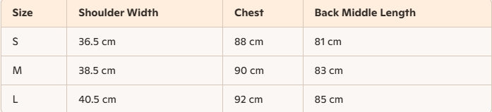 - Size : S, M, L