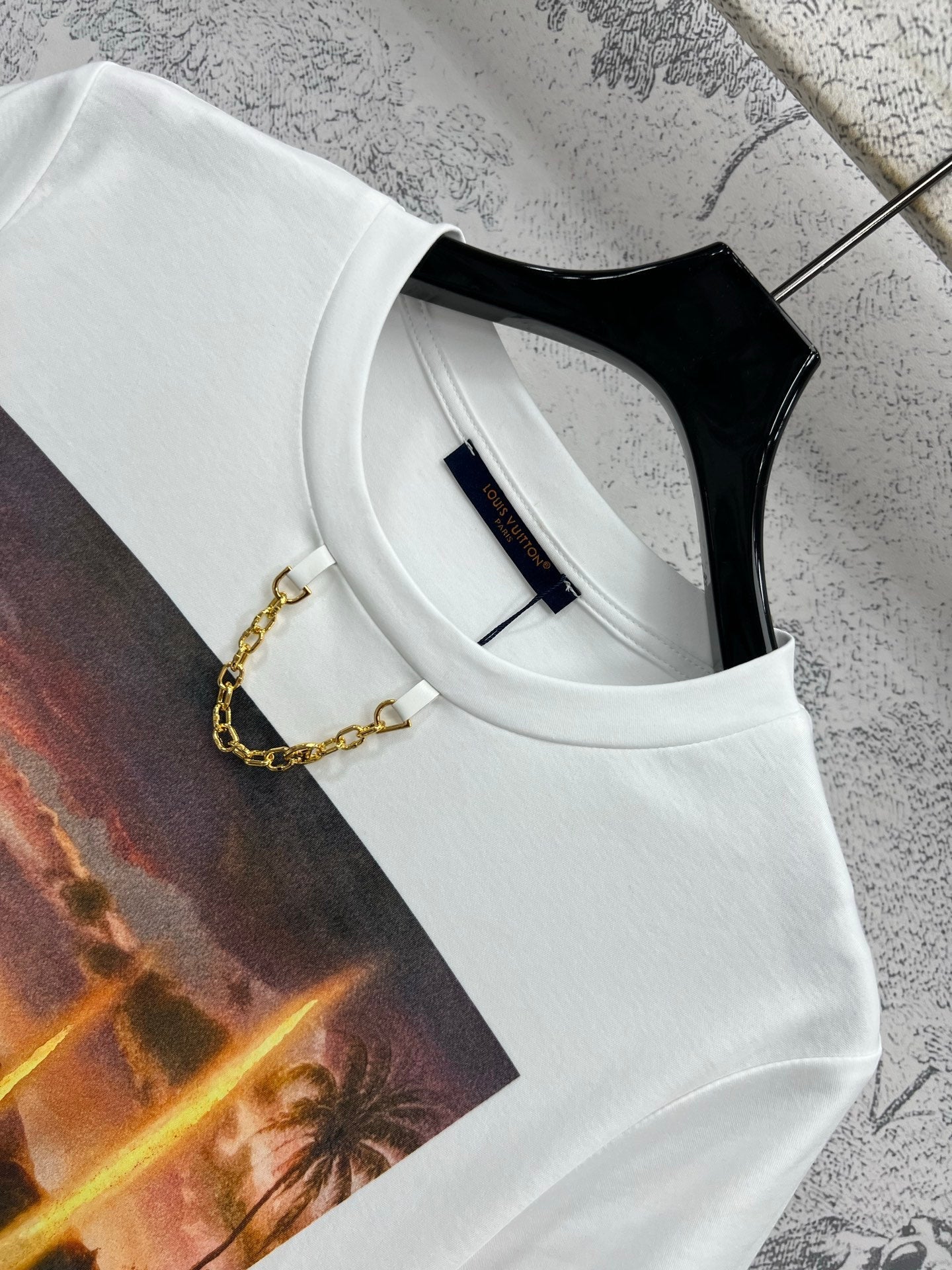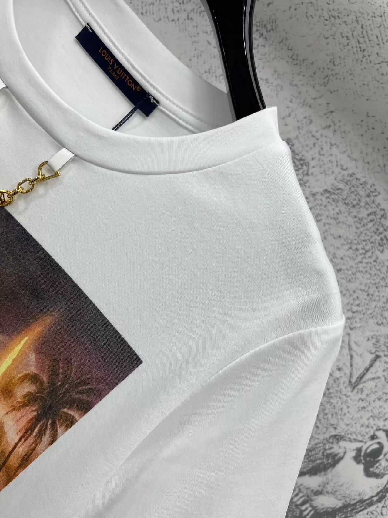 LV 25 Dusk Printed Patch Short-sleeved T-shirt White Cotton
