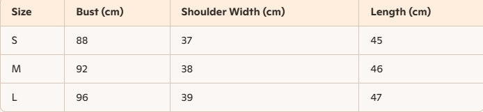 - Size : S, M, L