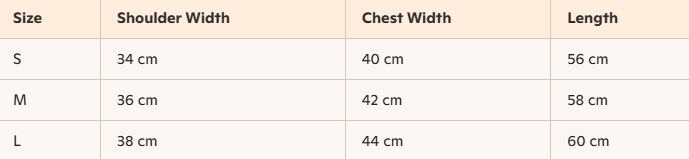 • Size : S, M, L