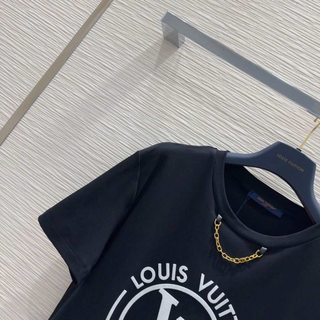 LV 25 Four-Leaf Clover Prints T-shirt Black Cotton