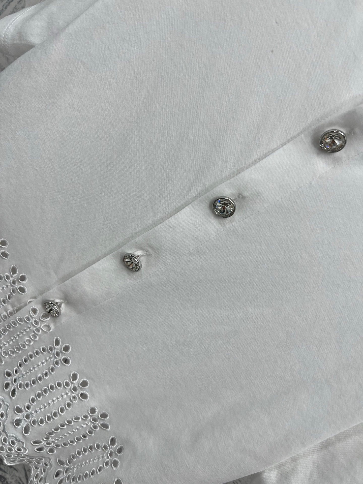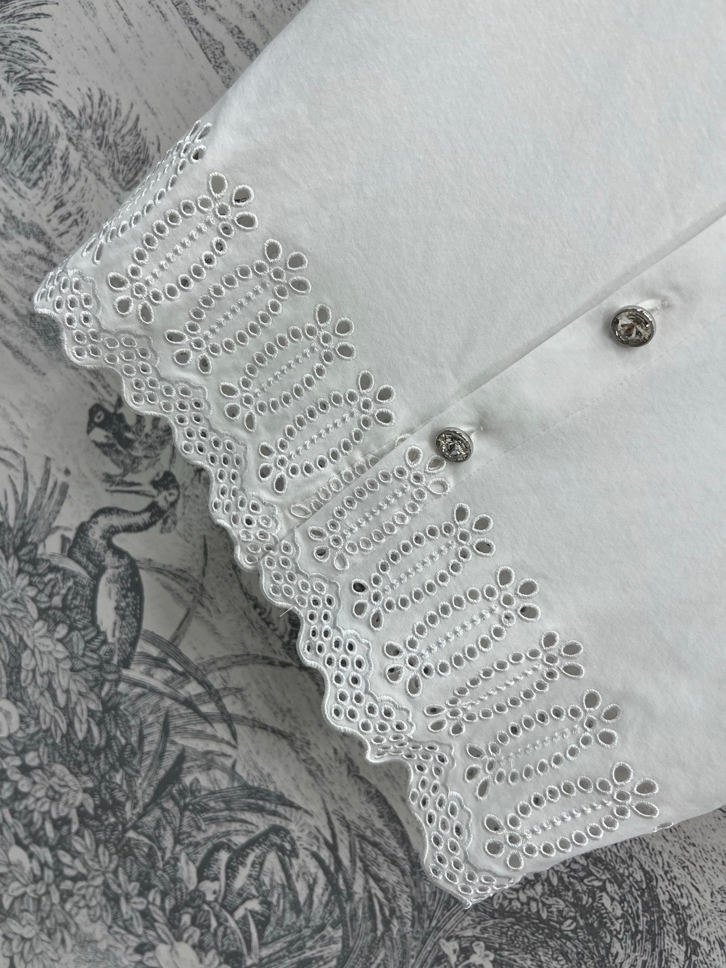LV 25 Hollow Embroidery Design On The Hem T-Shirt White Cotton