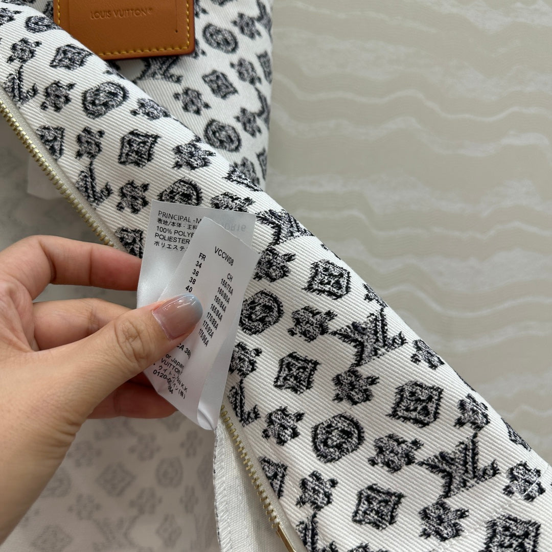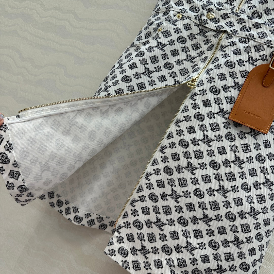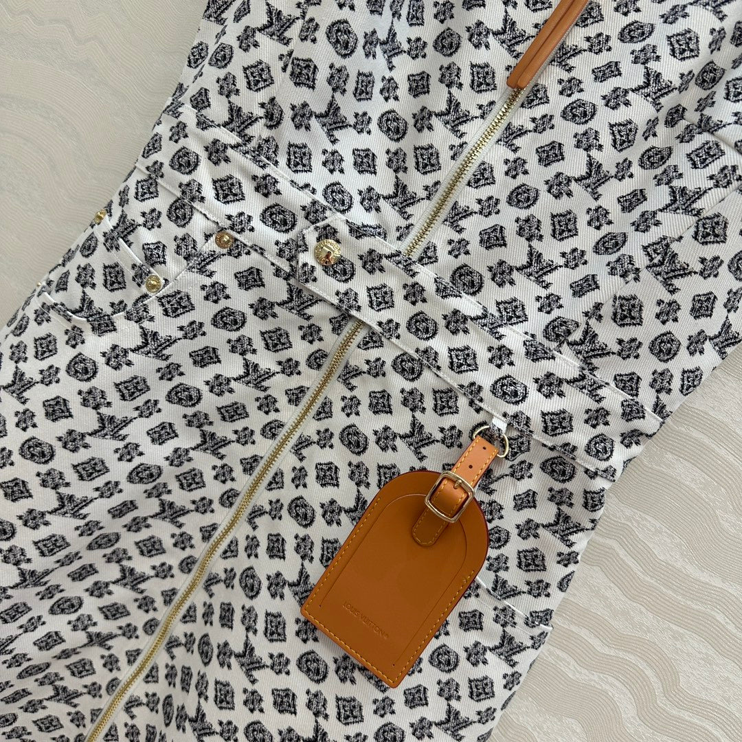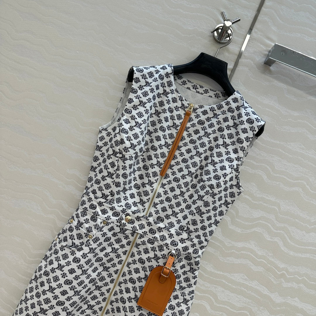 LV 25 Modern Logo Denim Long Vest Dress Black White Poliester