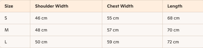 - Size : S, M, L