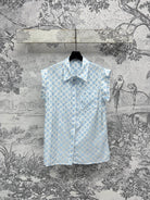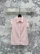 LV 25 Retro Hong Kong Small Flying Sleeve Shirt Pink Black Blue Viscose Rayon