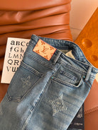 LV 25 Ripped Craft Monochrome Straight-Leg Jeans Blue Cotton