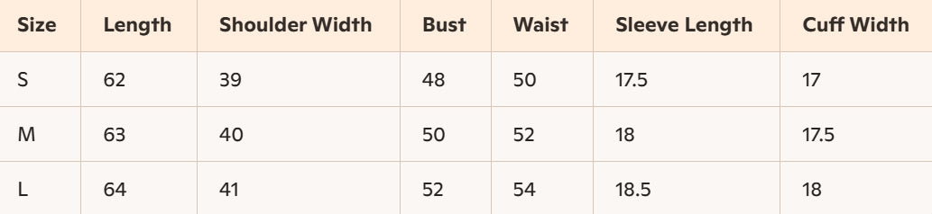 - Size : S, M, L