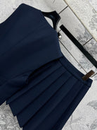 LV 25 Slight Waist Design Set Vest Blue Polyester