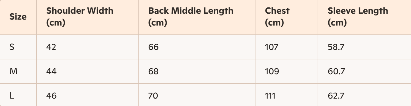• Size: S, M, L