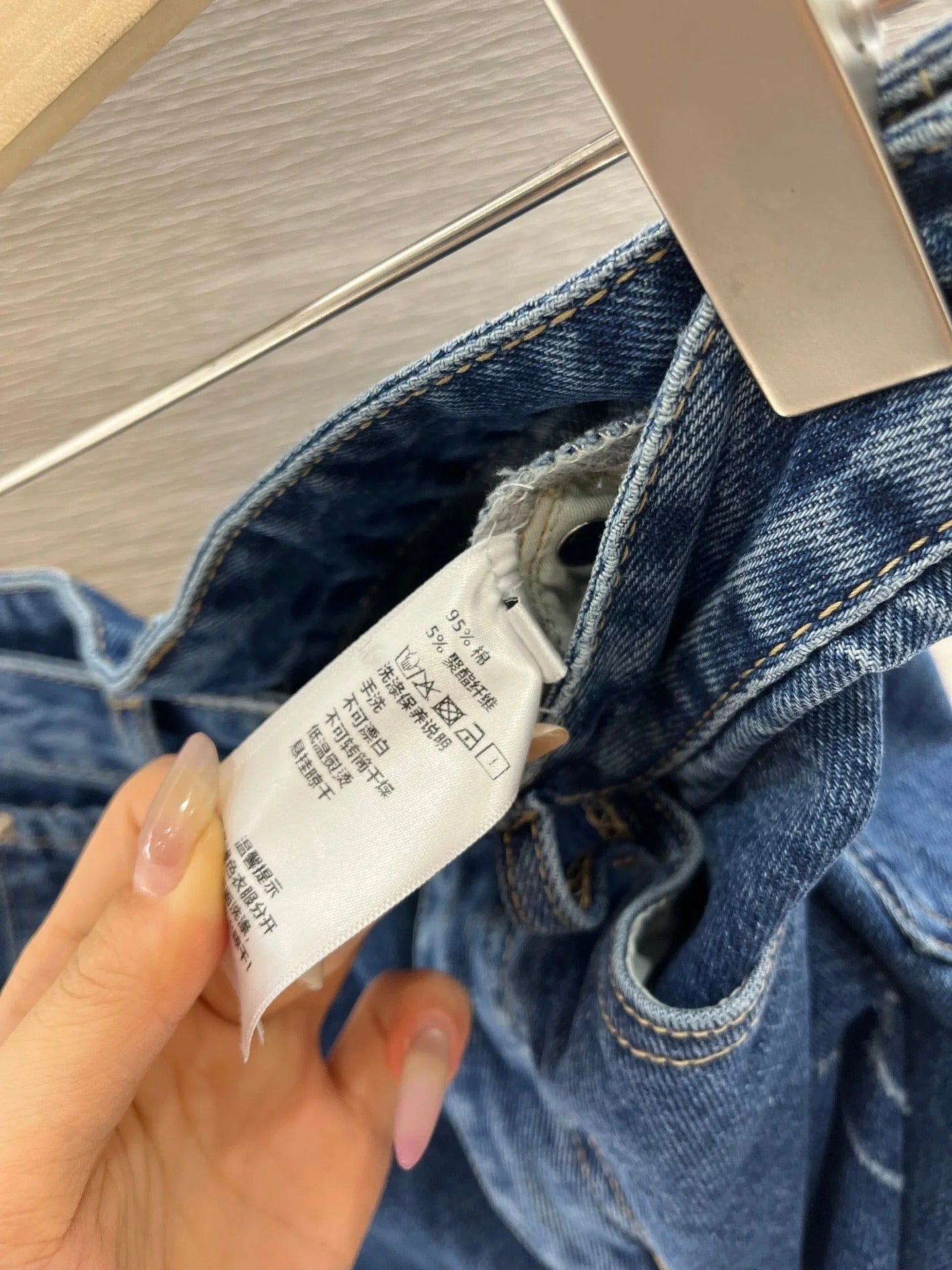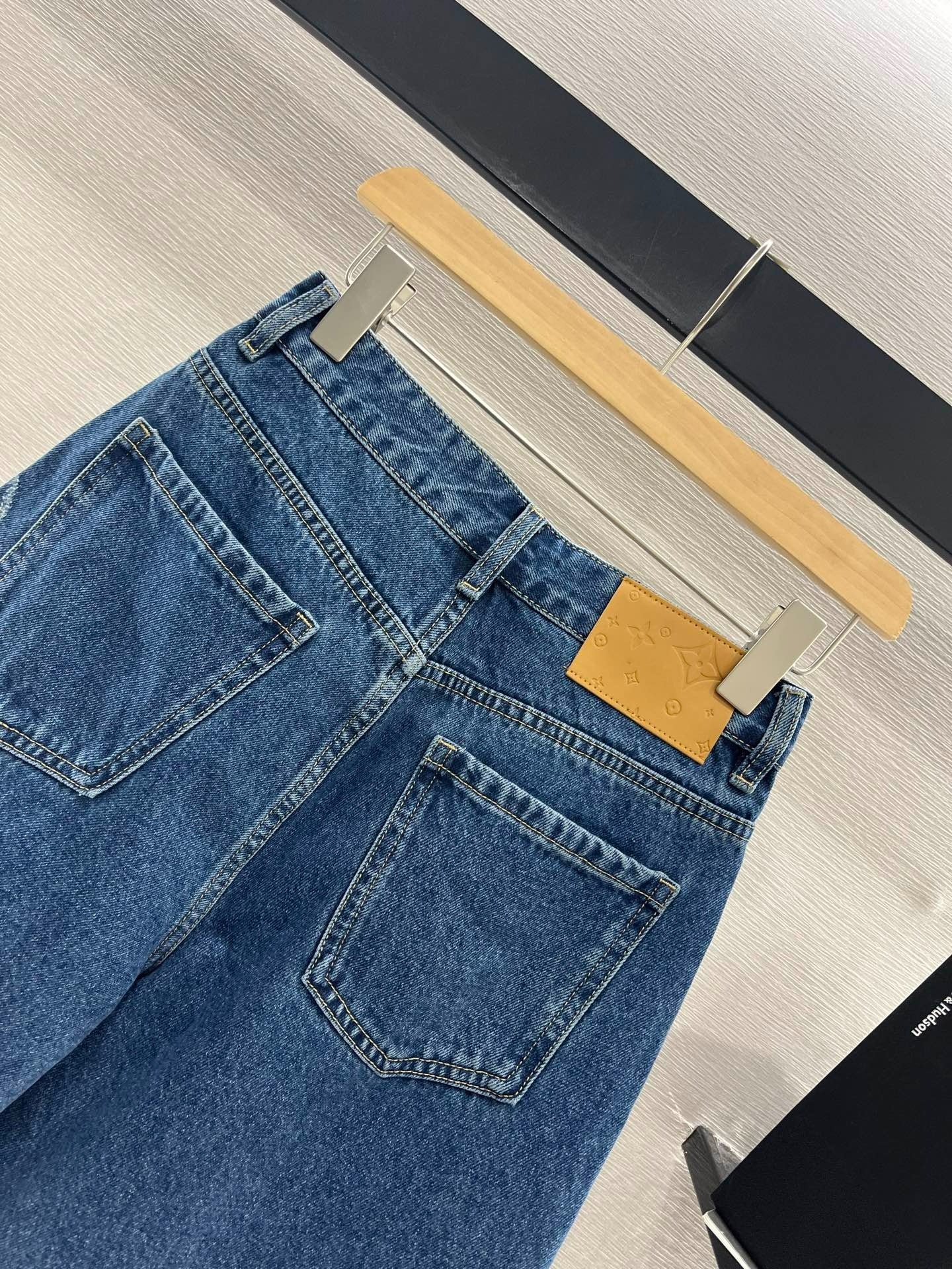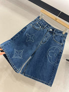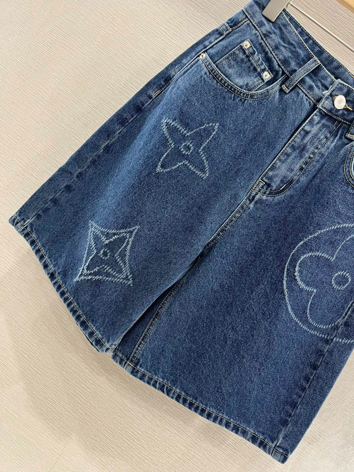 LV HIGH-WAIST LASER-CUT DENIM SHORTS