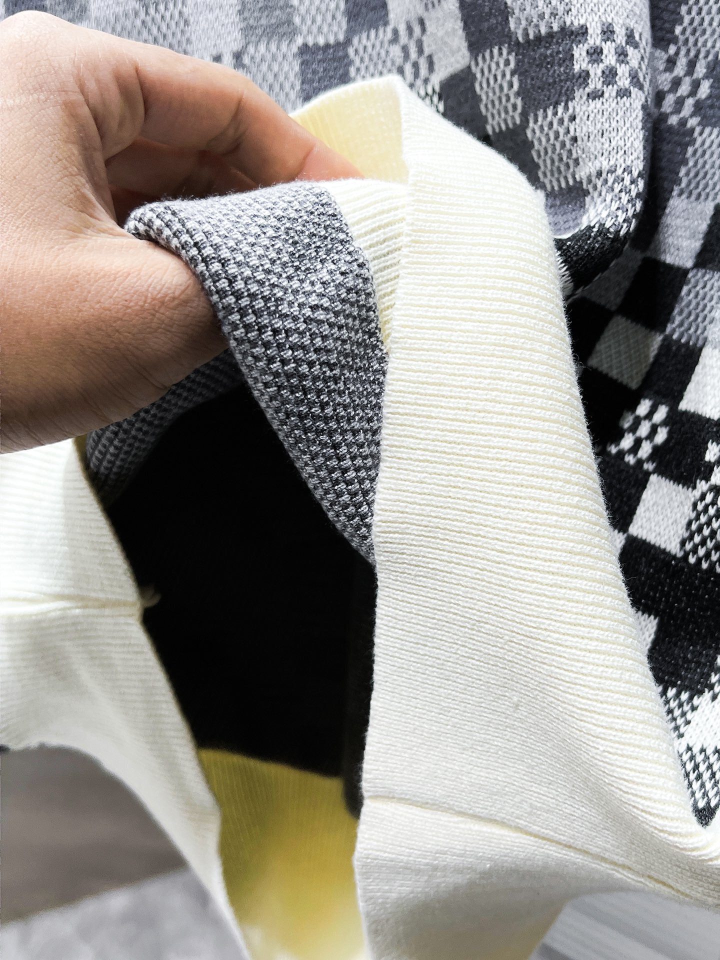 LV KNITTED SWEATER IN GRAY BLACK WHITE DAMOFLAGE MOTIF WOOL 238799
