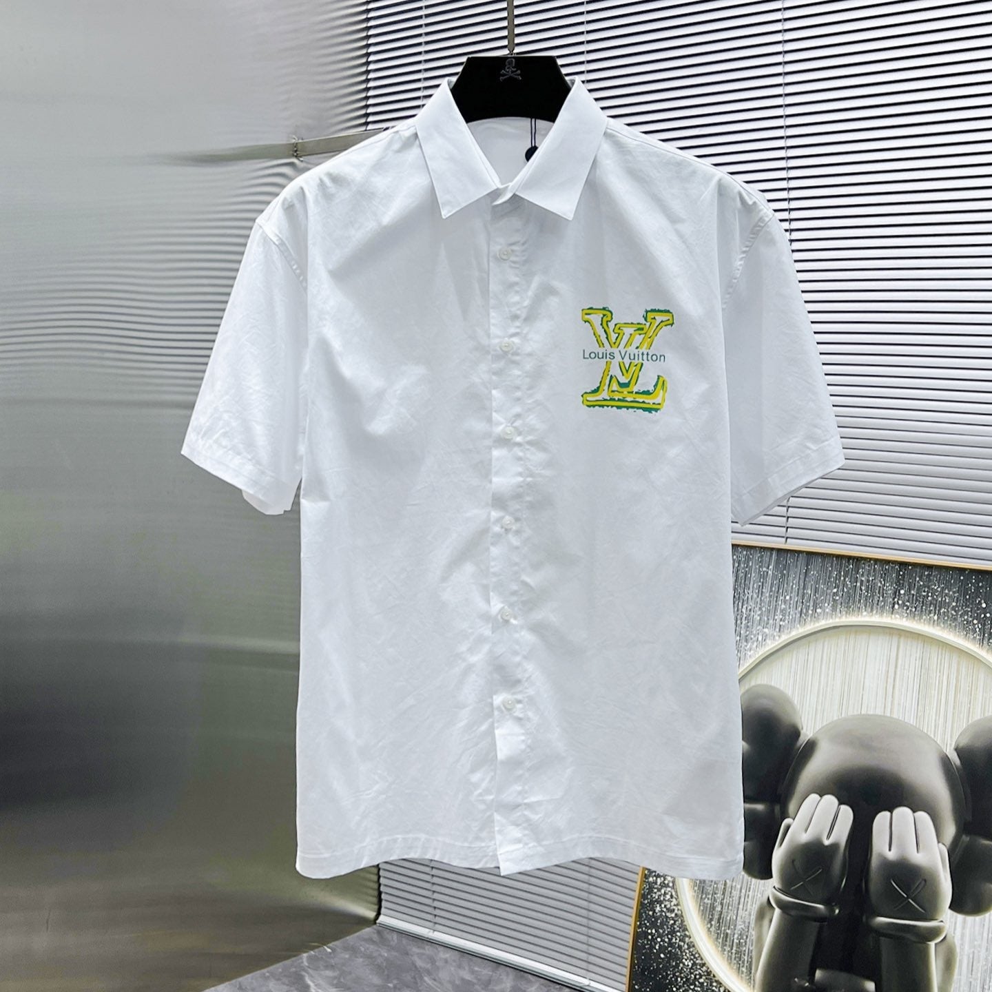 LV SHORT-SLEEVED SHIRT IN WHITE COTTON GREEN YELLOW LOGO 238815