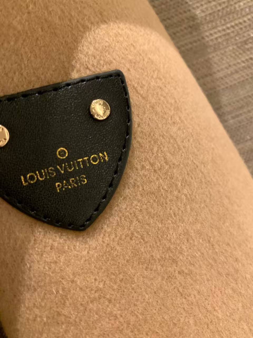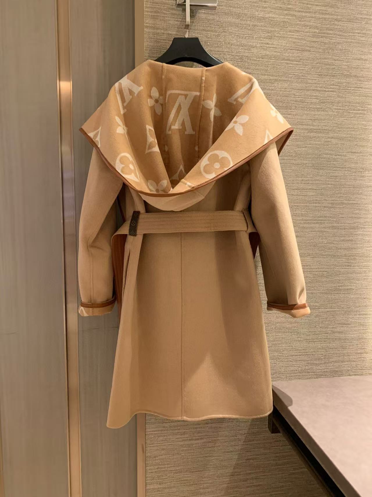 LV25 Reversible Signature Hooded Wrap Coat Beige mix Light Pink Wool Silk Blend