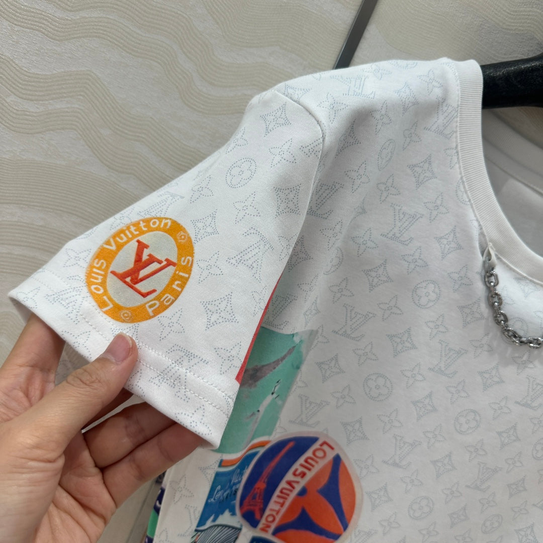 LV Pattern Logo Positioning Poster Badge Printed T-shirt White Cotton