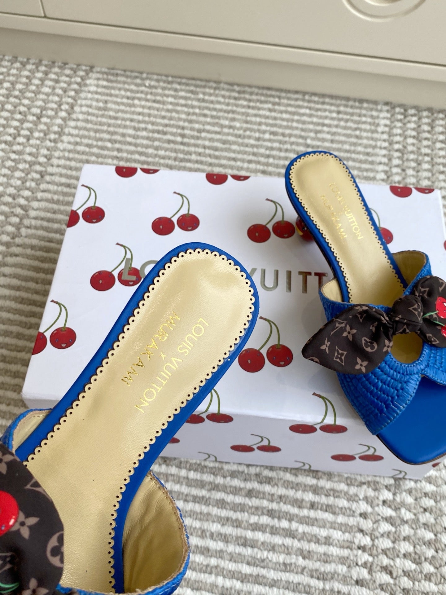 Cherry Series LV X TM CHERIE Sandals Beige Blue Woven Raffia 442133