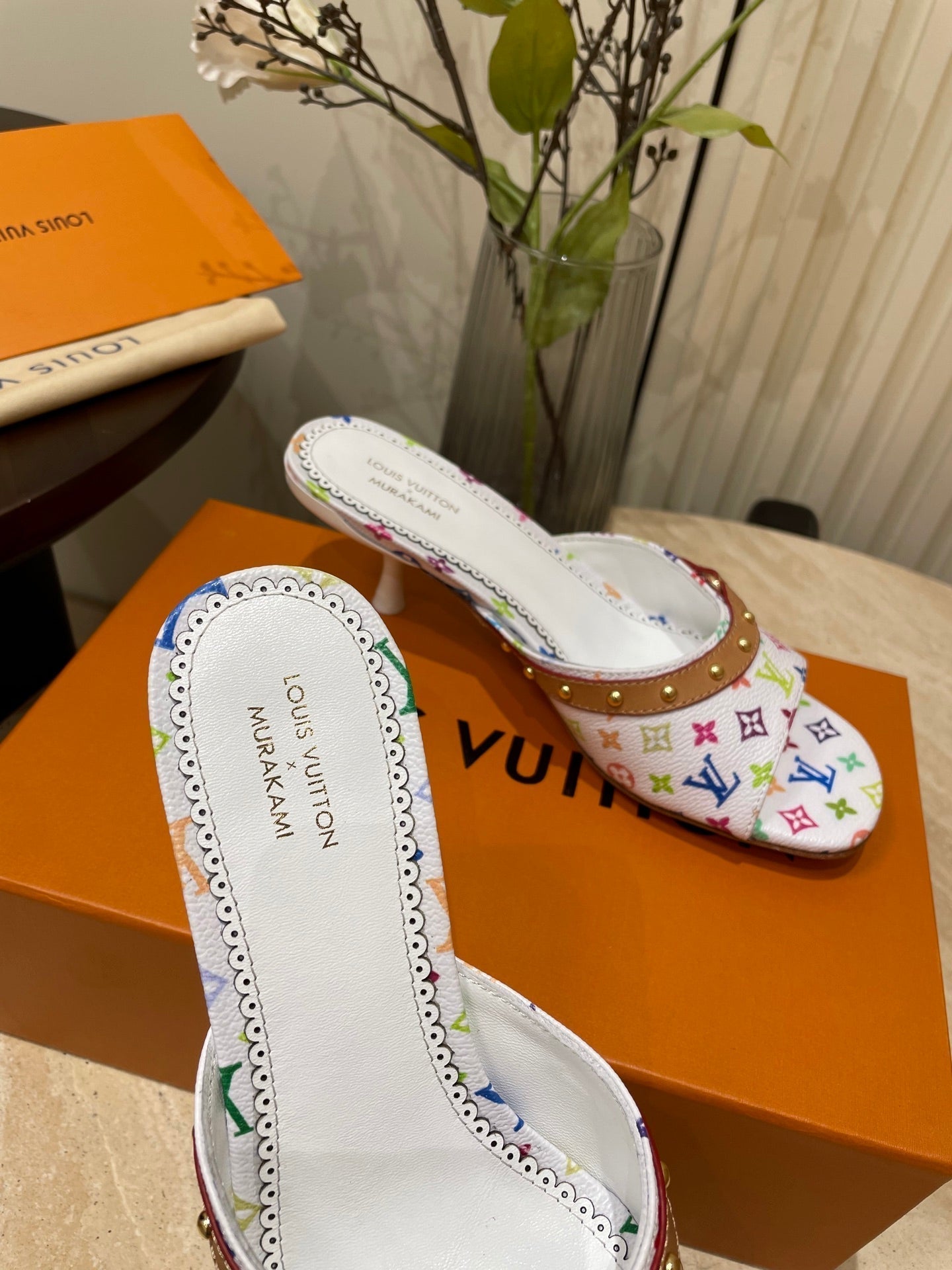 HIGH 5 CM MULES IN WHITE MONOGRAM LAMBSKIN