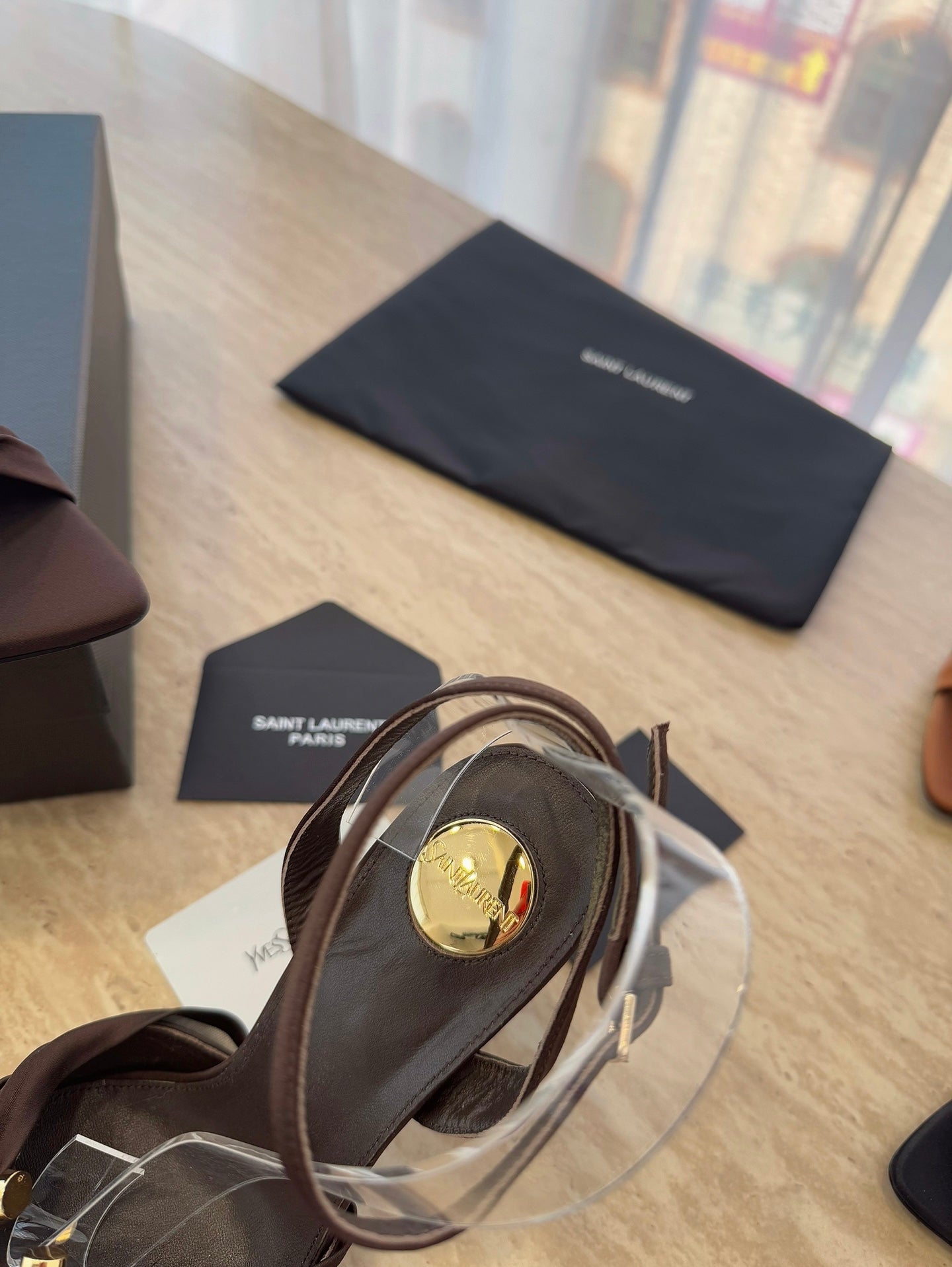 LOLA SANDAL 10 CM IN CHOCOLATE BROWN VISCOSE AND SILK