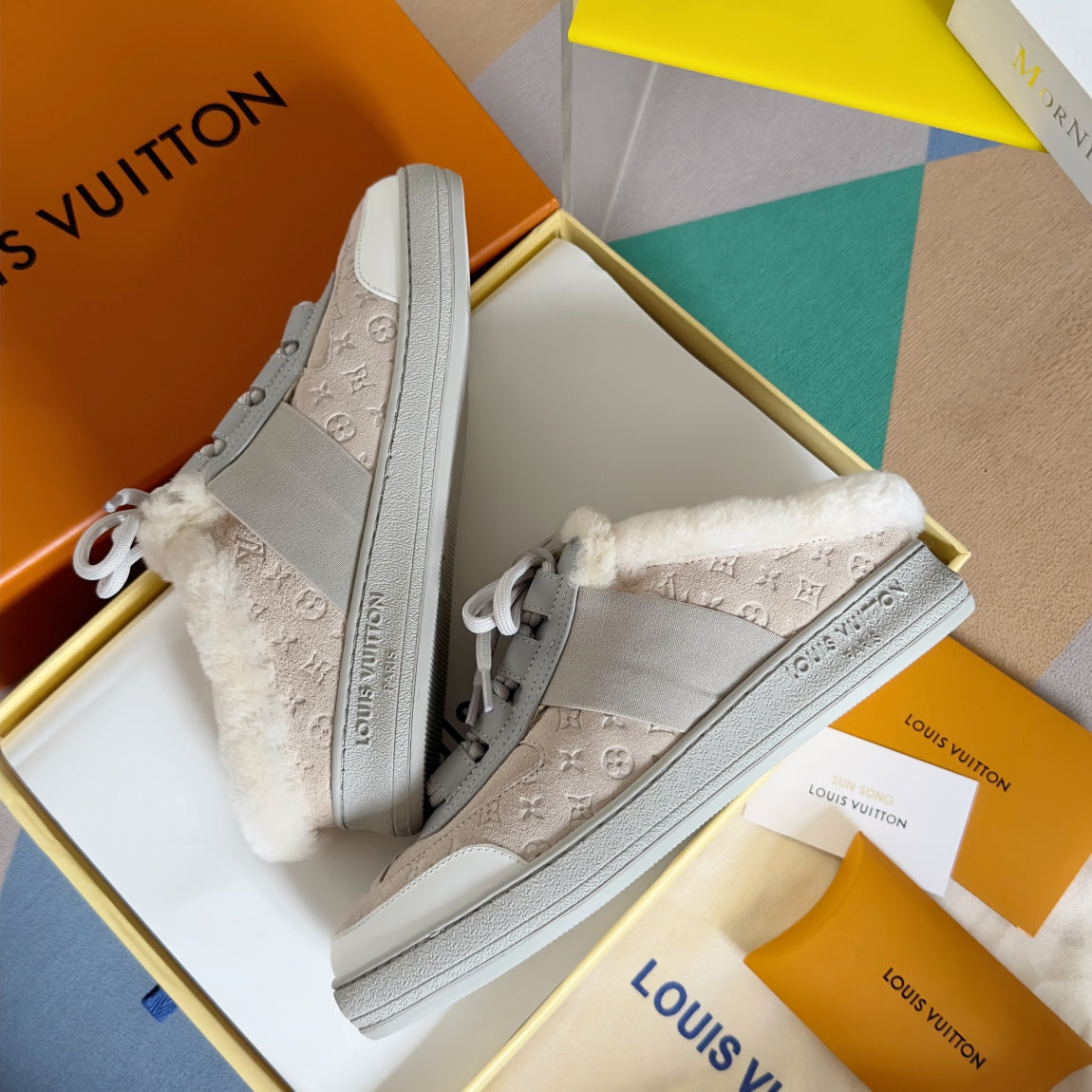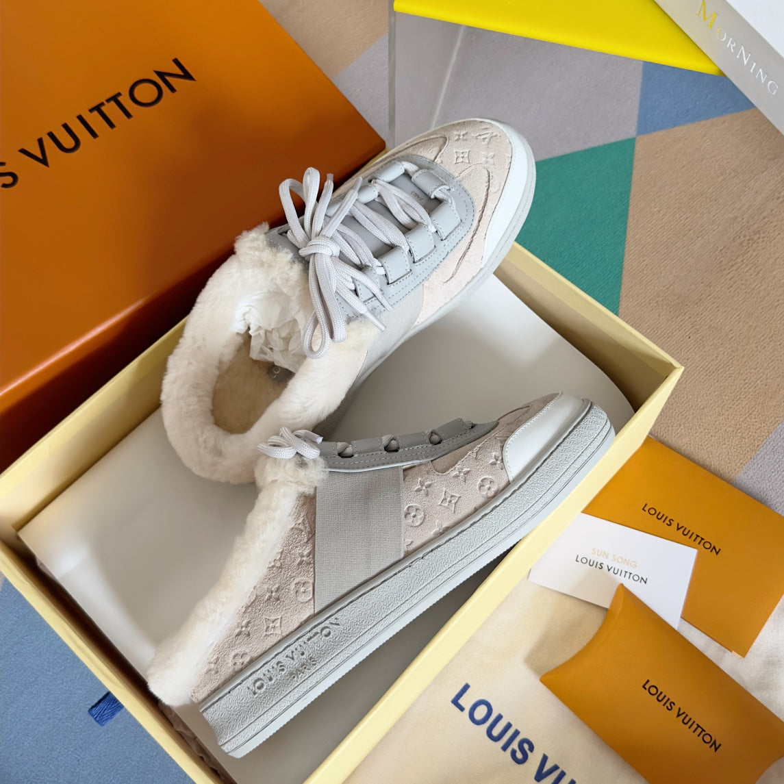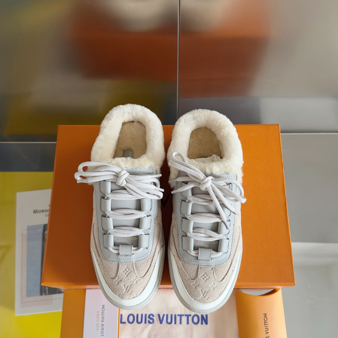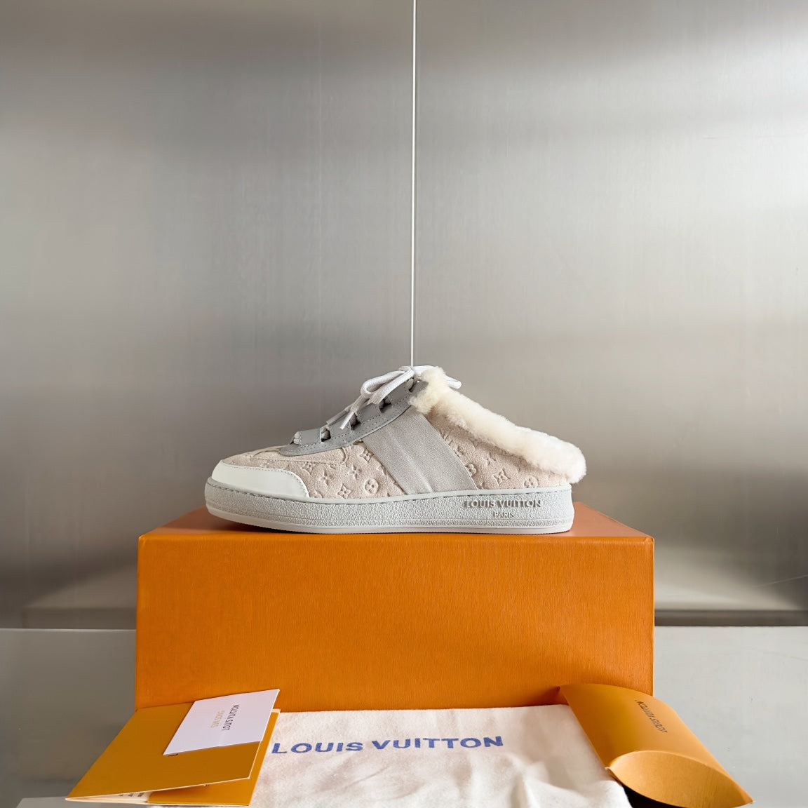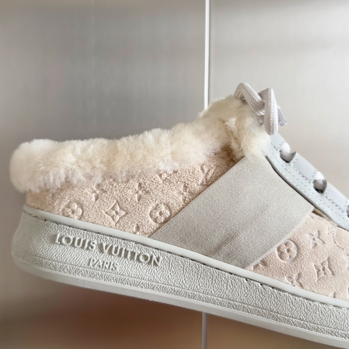 LV Lous Open Back Sneaker 30mm Beige Monogram Suede