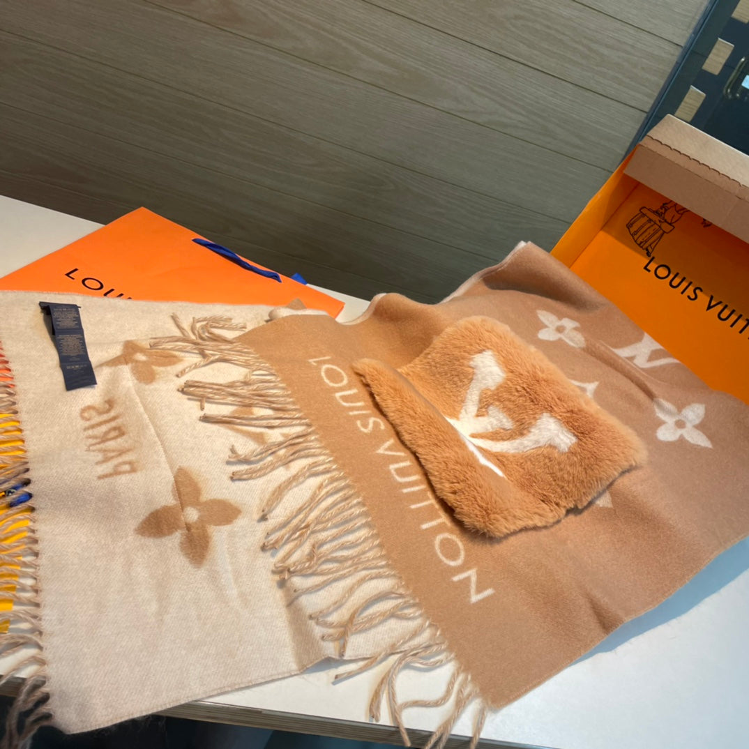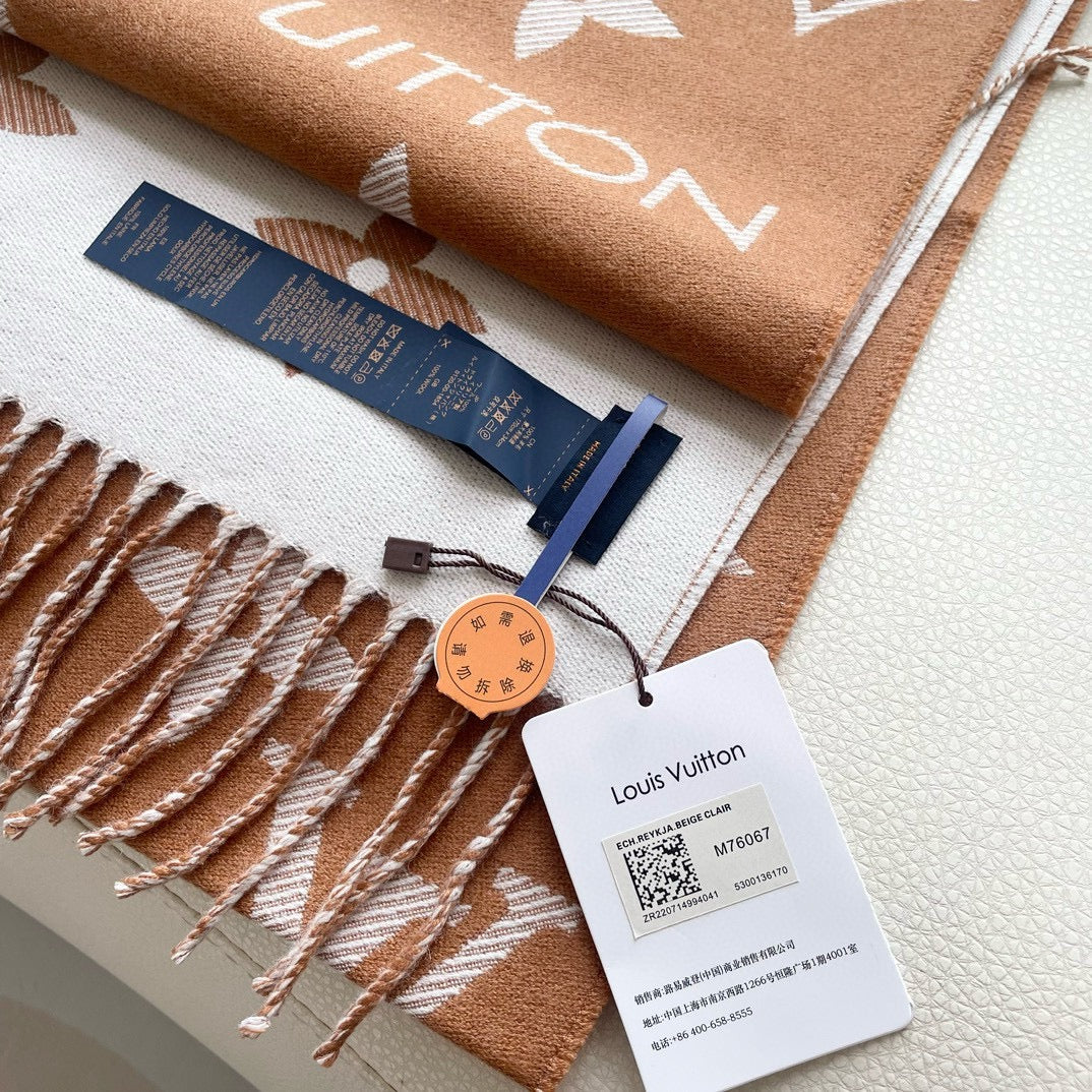 DAMIER SCARF 190 CM IN KHAKI BROWN CASHMERE 391147