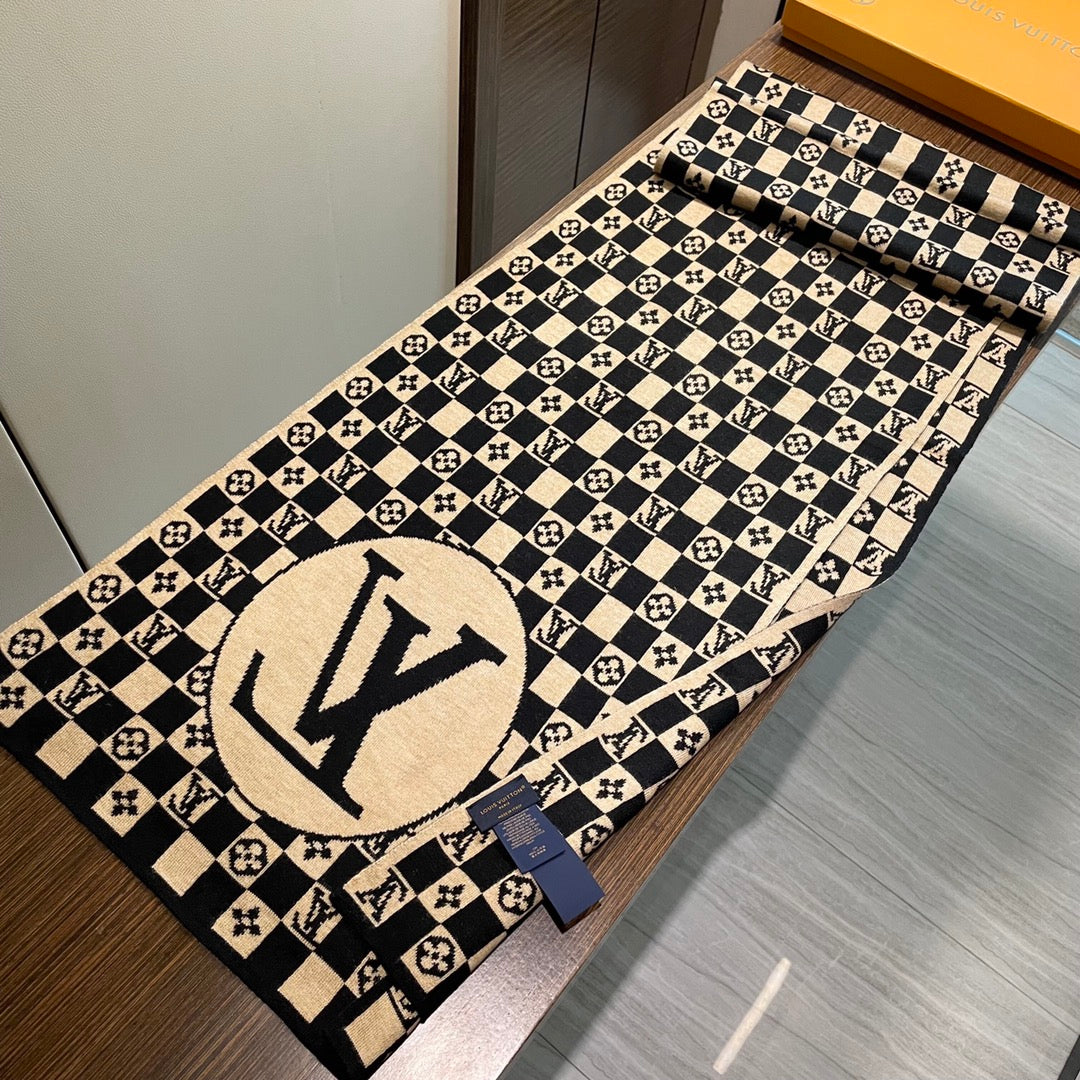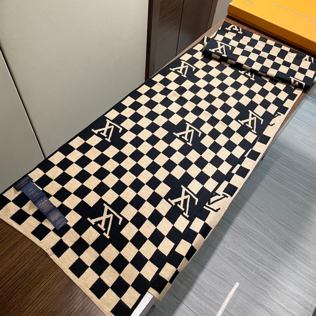 DAMIER HERITAGE SCARF 180 CM IN BLACK MIX GRAY CASHMERE 391150