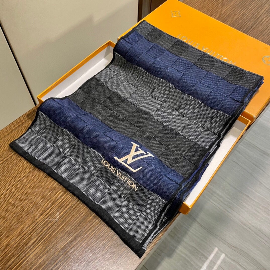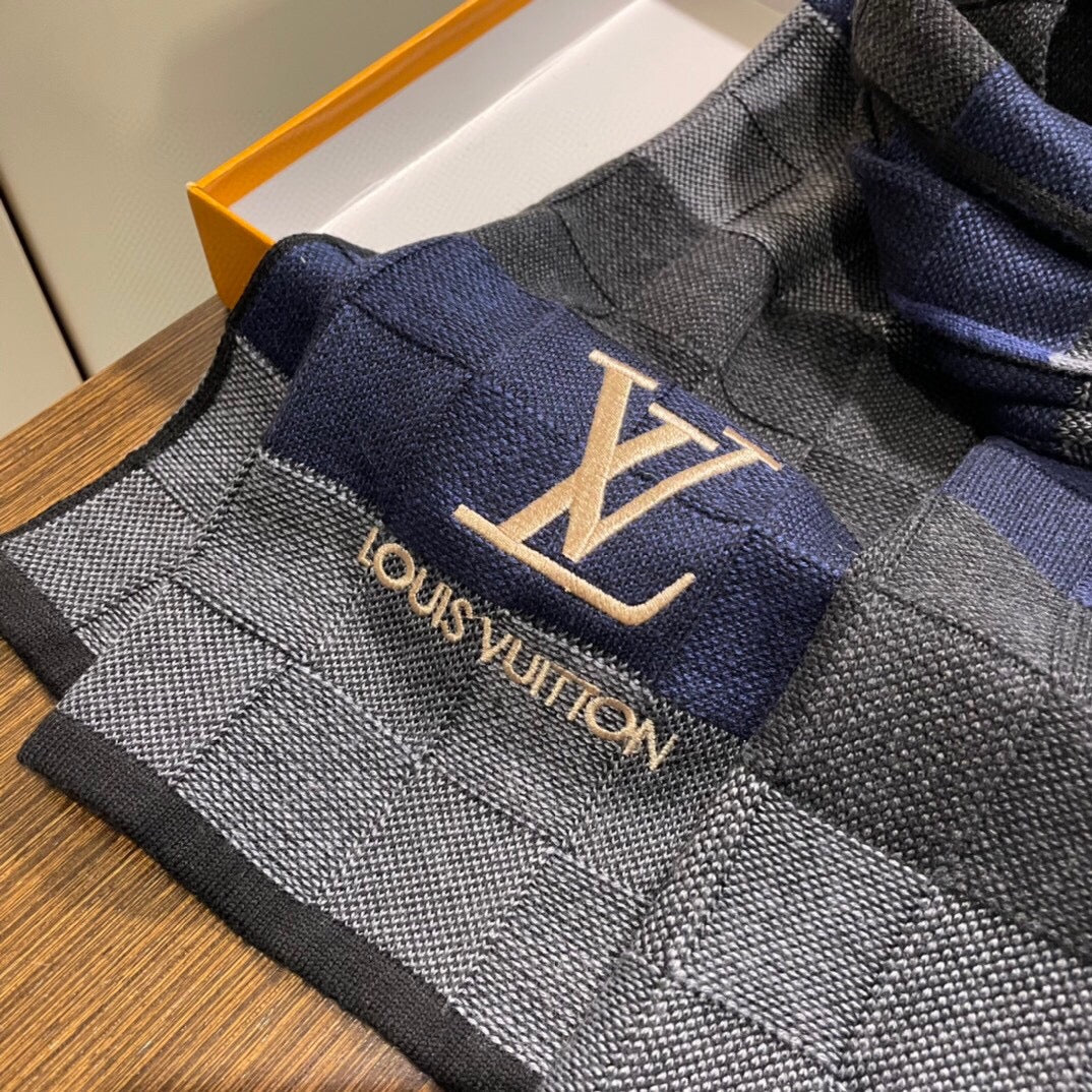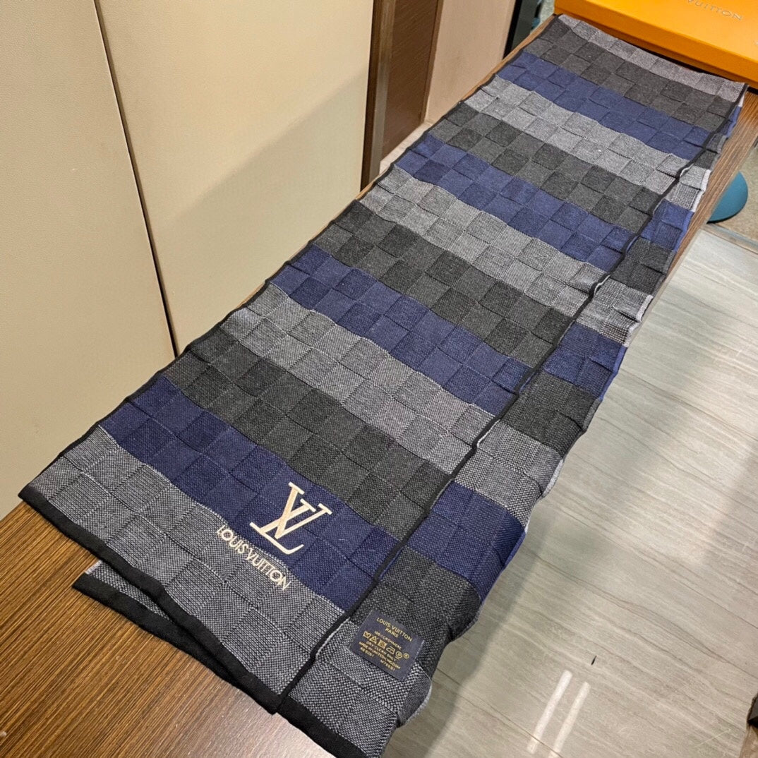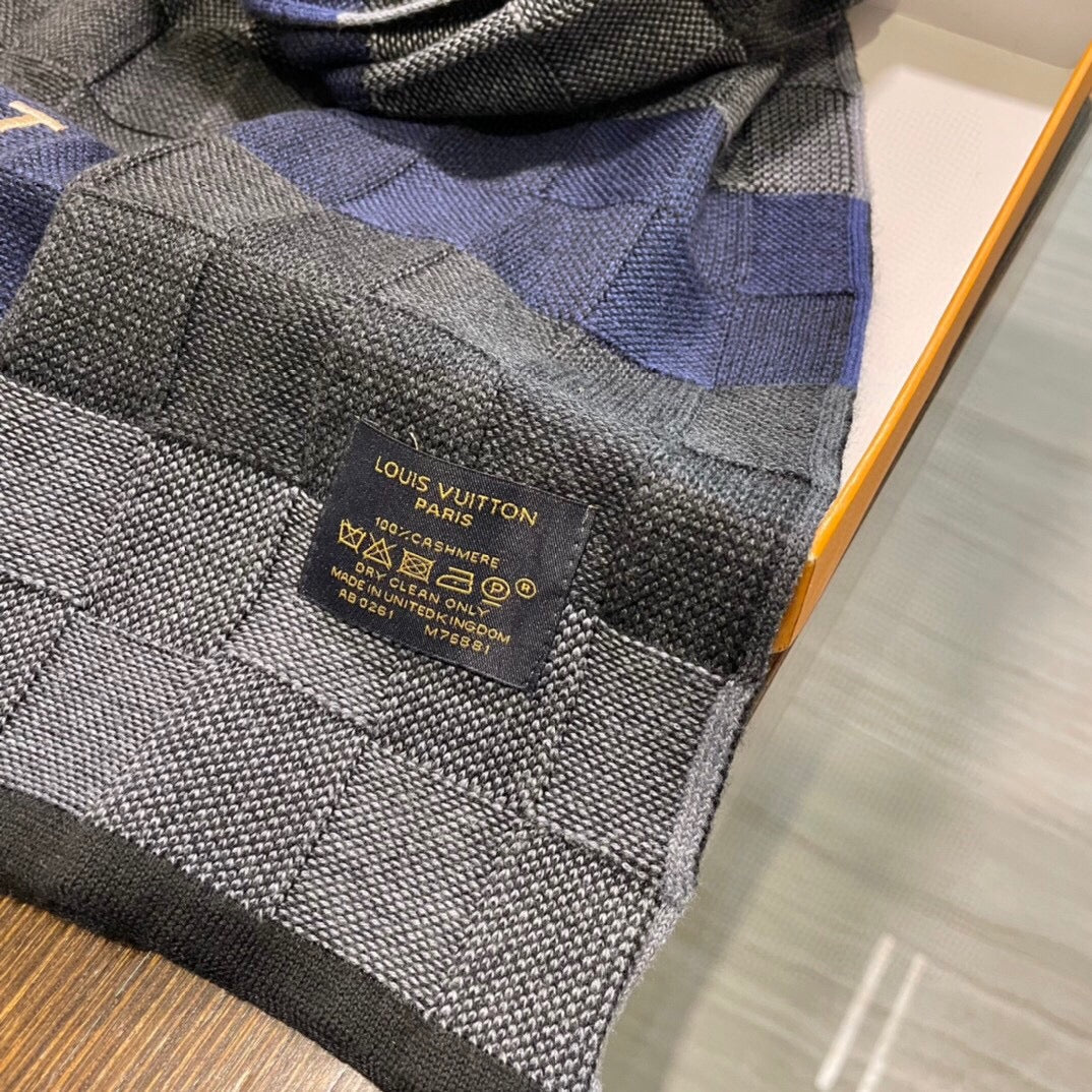 DAMIER SCARF 180 CM IN MIDNIGHT BLUE MIX GRAY CASHMERE 388316
