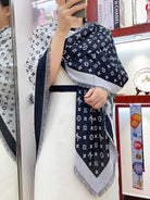 DUOGRAM SCARF 140 CM IN WHITE MIX BLACK SILK 396239