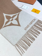 GRAPHIC DUAL SCARF 192 CM IN TUSCAN BEIGE MIX WHITE WOOL AND CASHMERE 396434