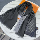 MONOGRAM SCARF 200 CM IN BLACK CASHMERE AND SILK 388078