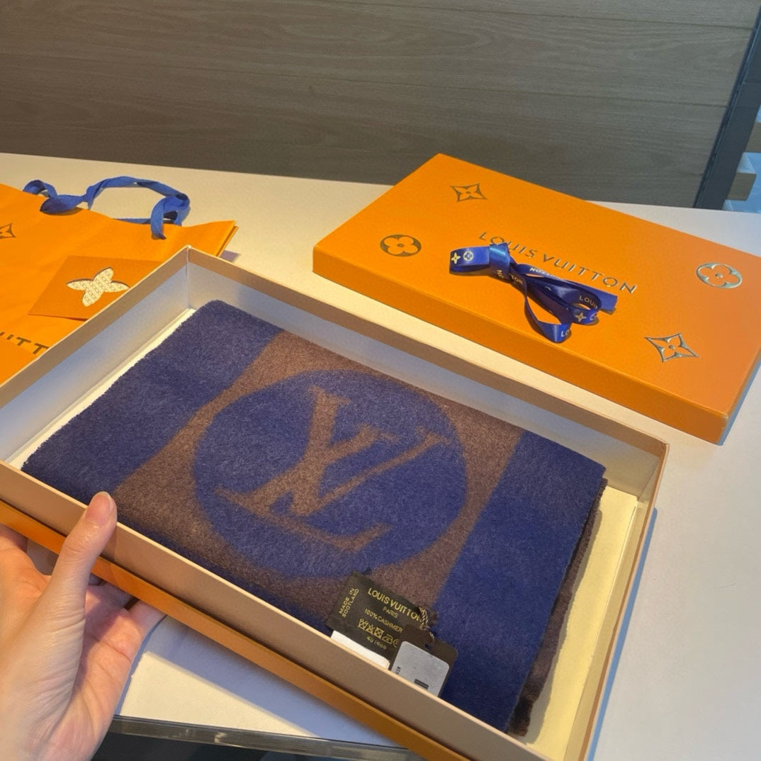 SCARF 180 CM IN COFFEE BROWN MIX BERRY BLUE CASHMERE 398245