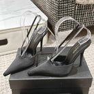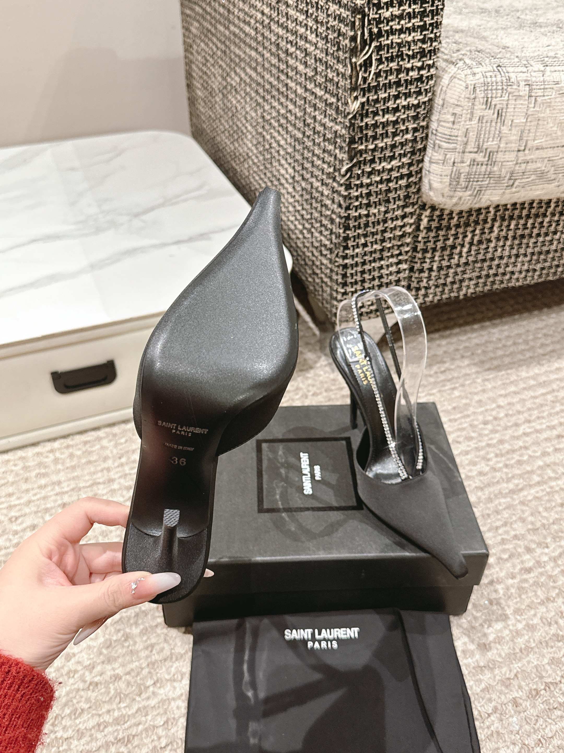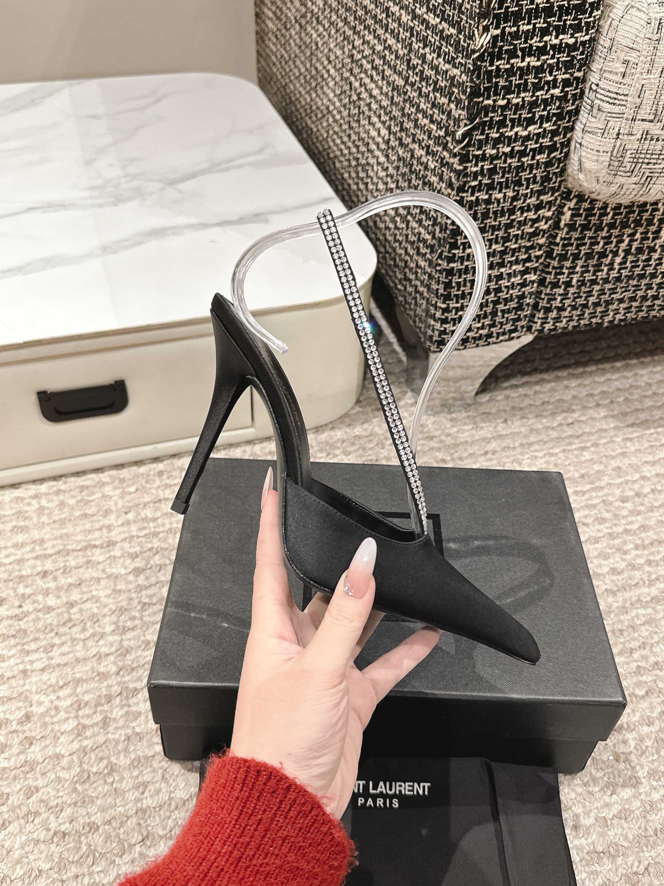 BARBARA 90 EMBELLISHED BLACK SATIN MULES WITH RHINSTONES