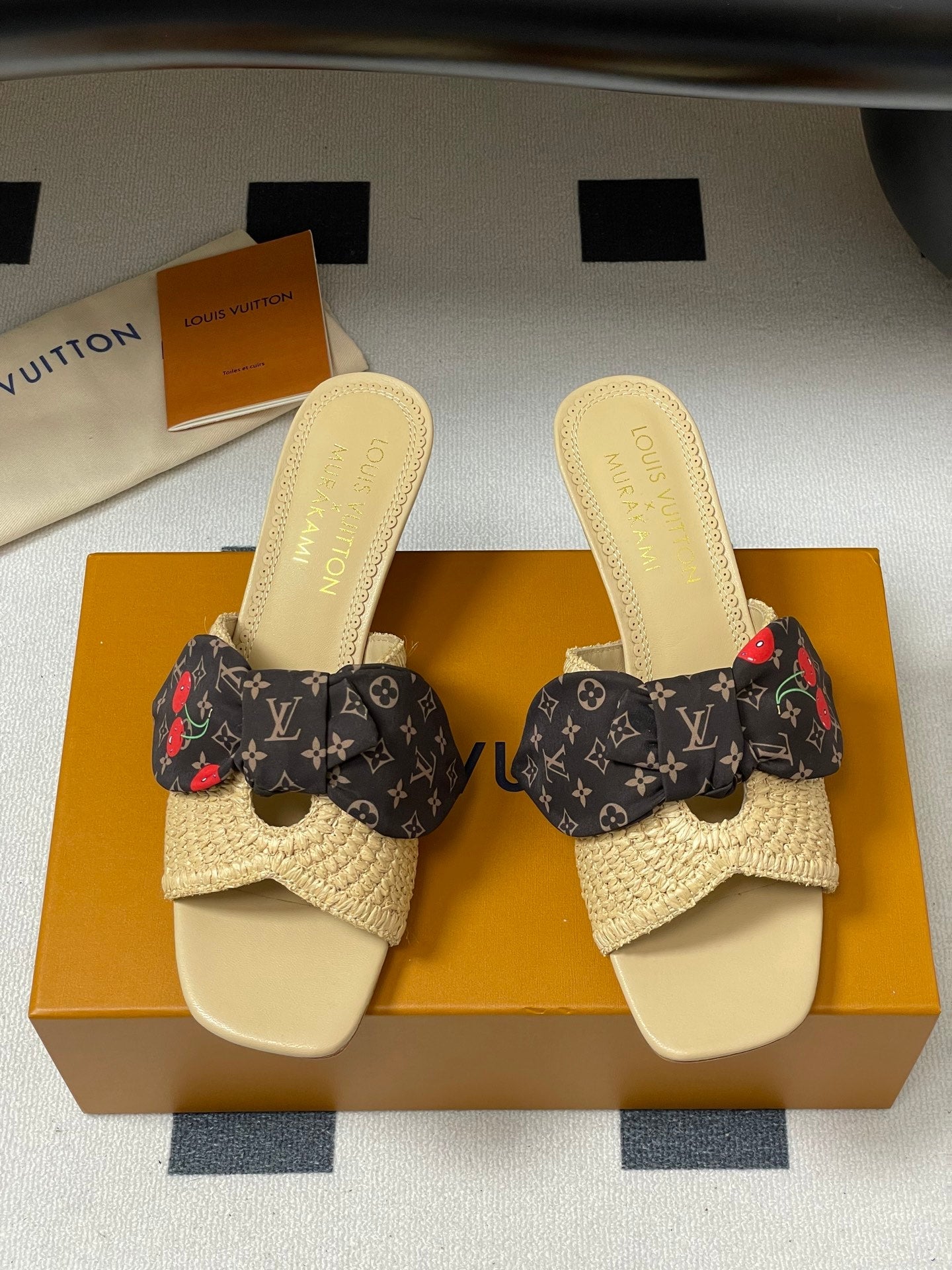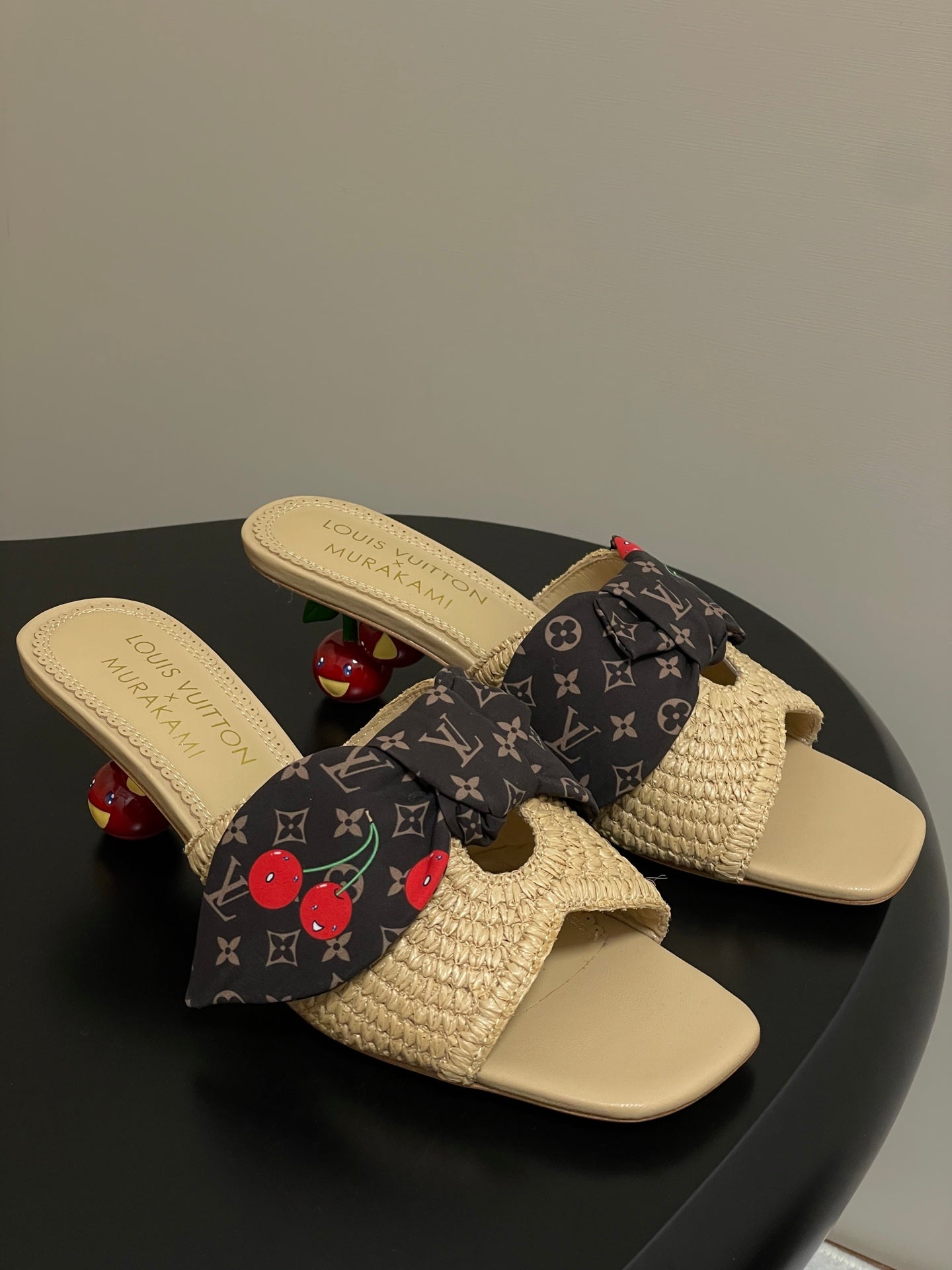 Cherry Series LV X TM CHERIE Sandals Beige Brown Woven Raffia
