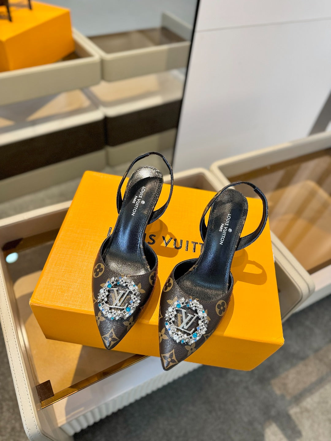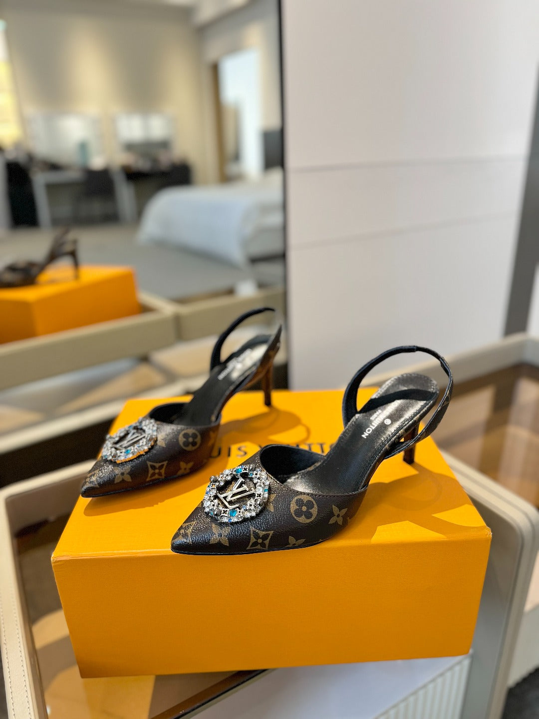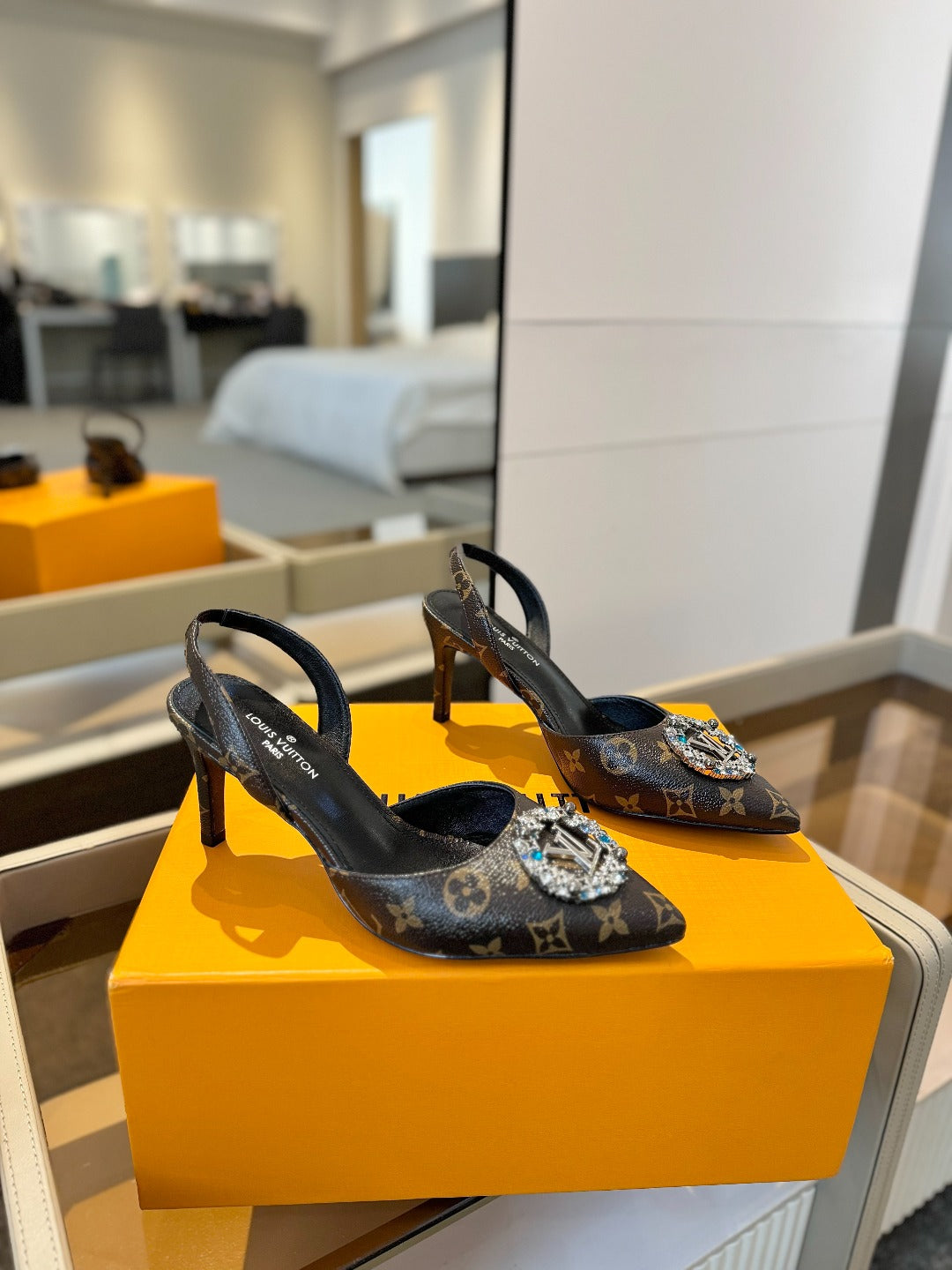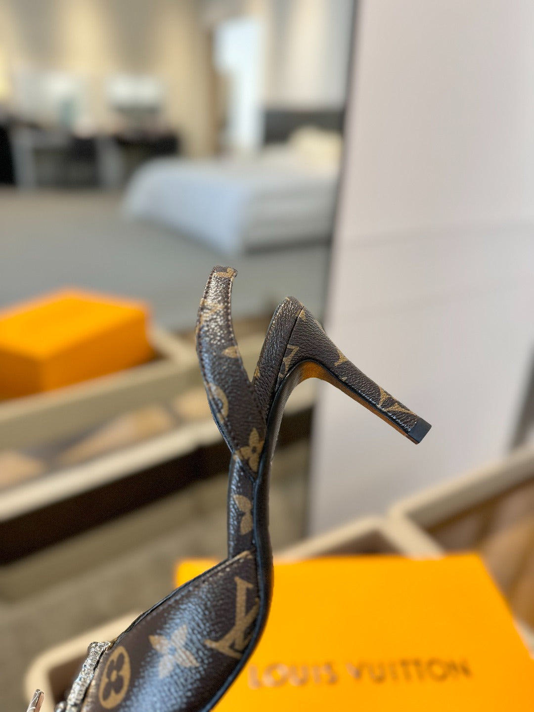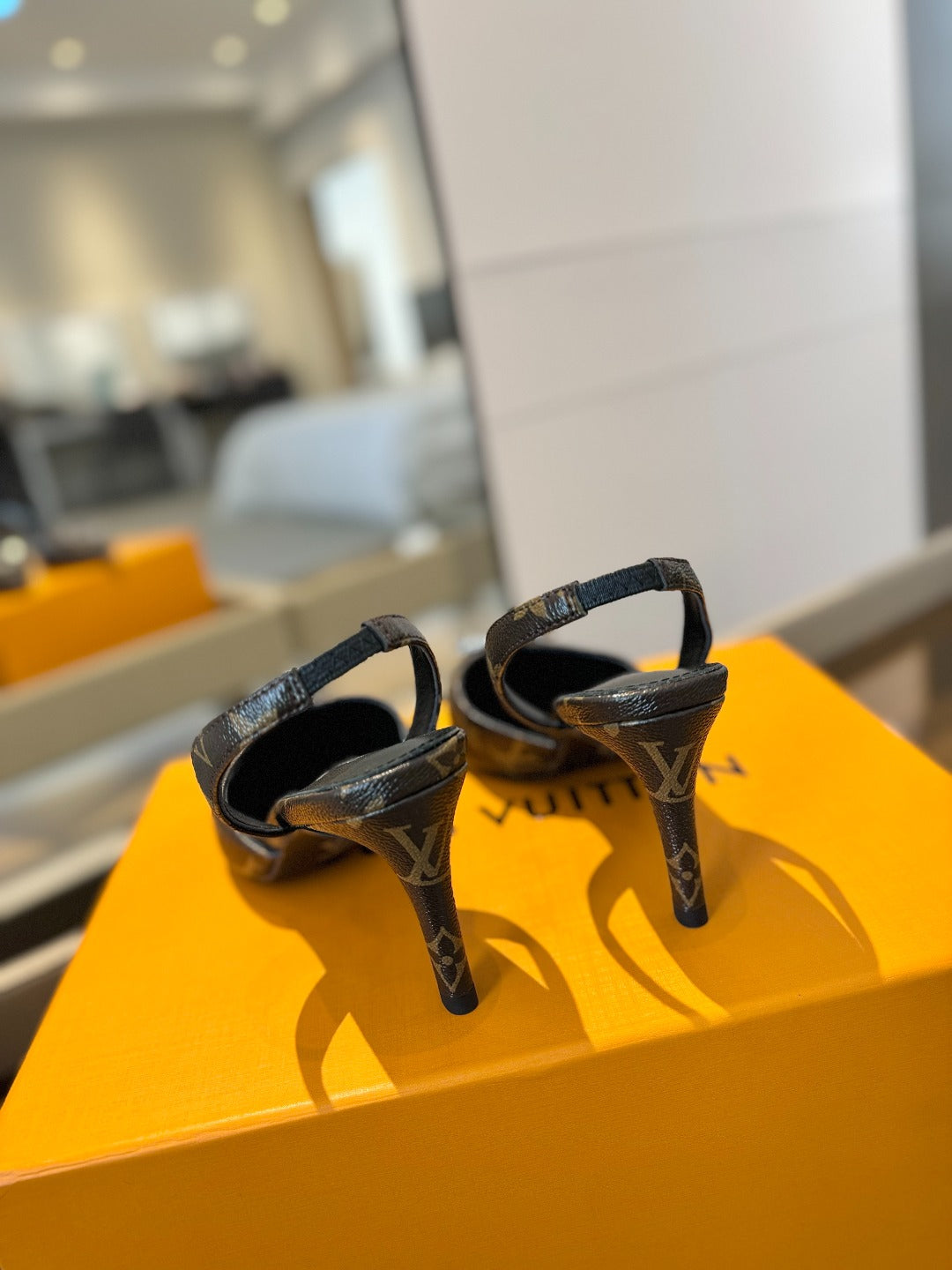 HIGH HEEL 75 MM SLINGBACK IN CHOCOLATE BROWN MONOGRAM CALFSKIN WITH CRYSTAL