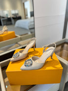 HIGH HEEL 75 MM SLINGBACK IN NUDE BEIGE CALFSKIN WITH CRYSTAL