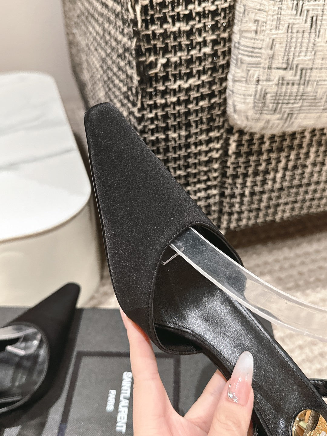 HIGH-HEELED SLINGBACKS SANDAL 7 CM IN BLACK SILK