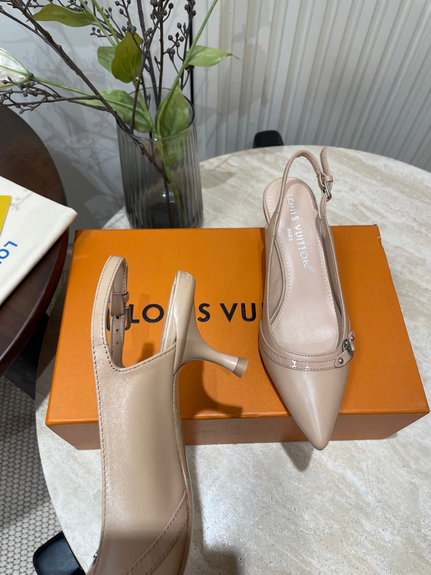 HIGH SLINGBACKS 5 CM IN BEIGE CREAM CALFSKIN