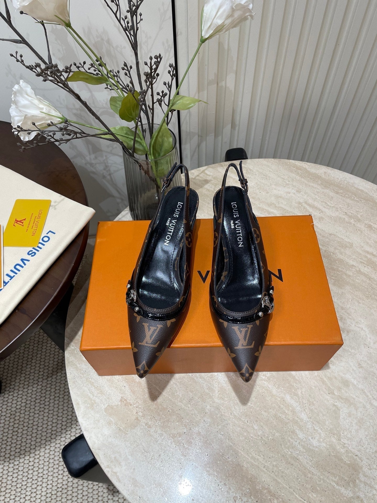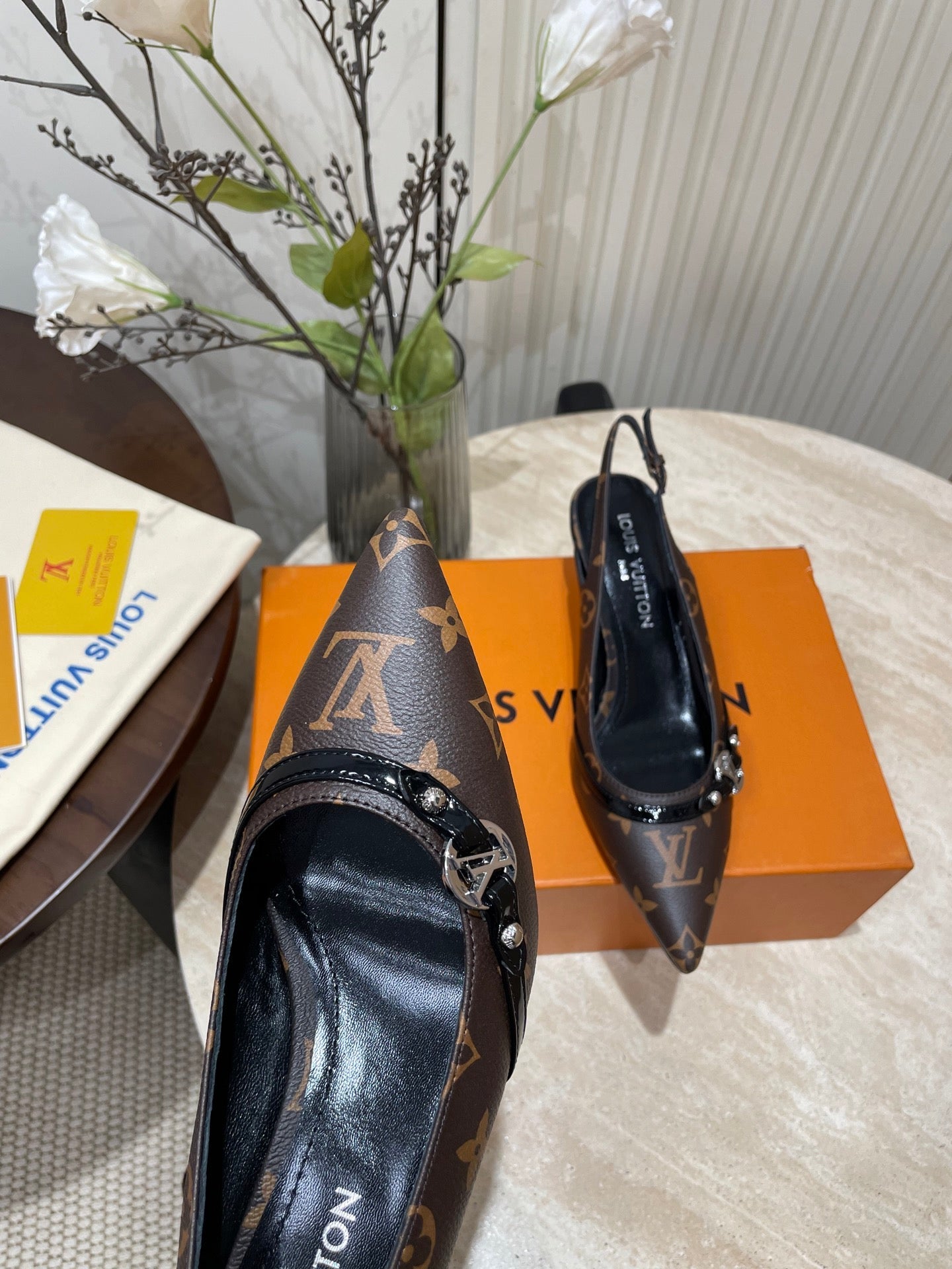 HIGH SLINGBACKS 5 CM IN CHOCOLATE BROWN MONOGRAM CALFSKIN