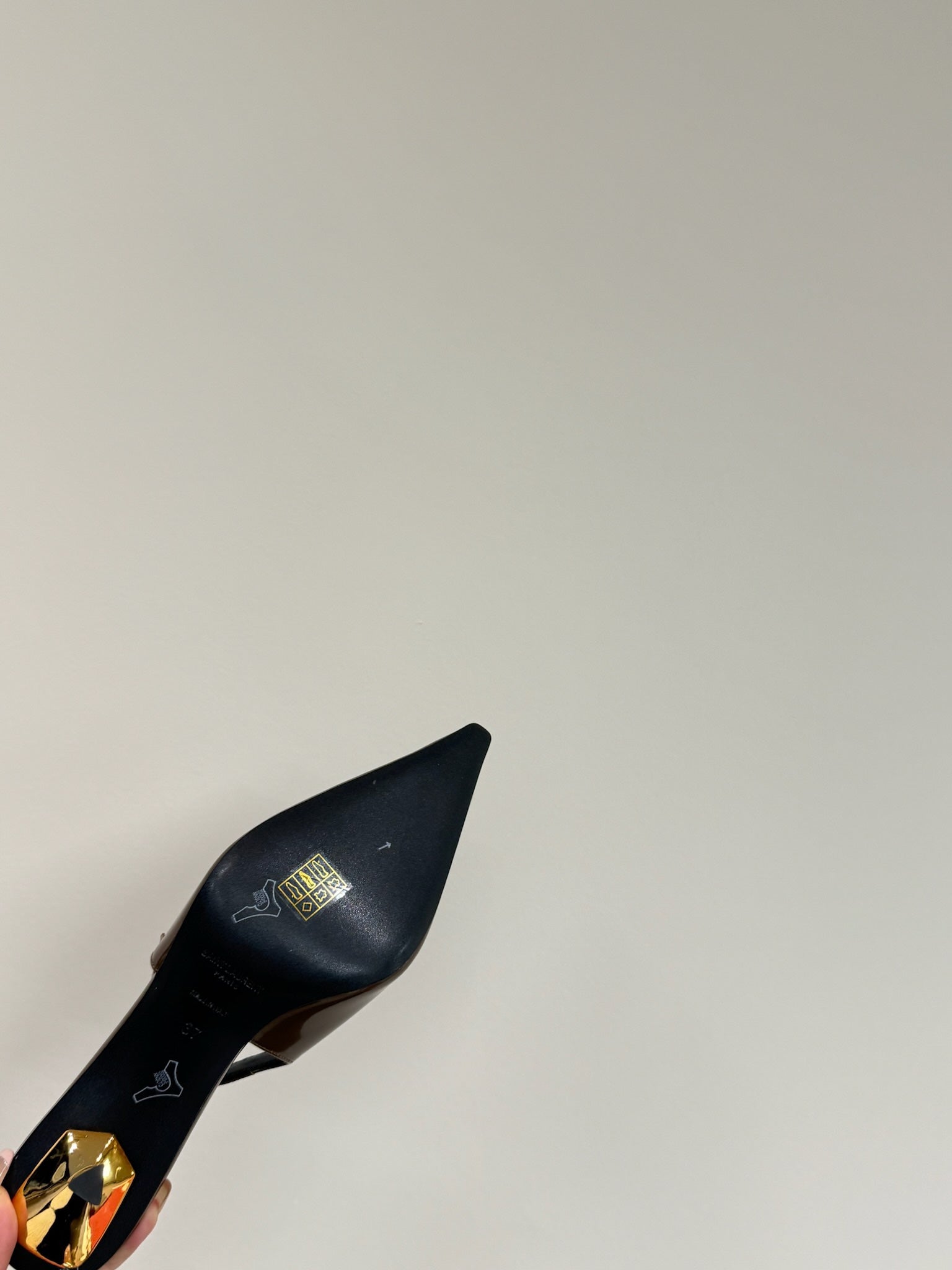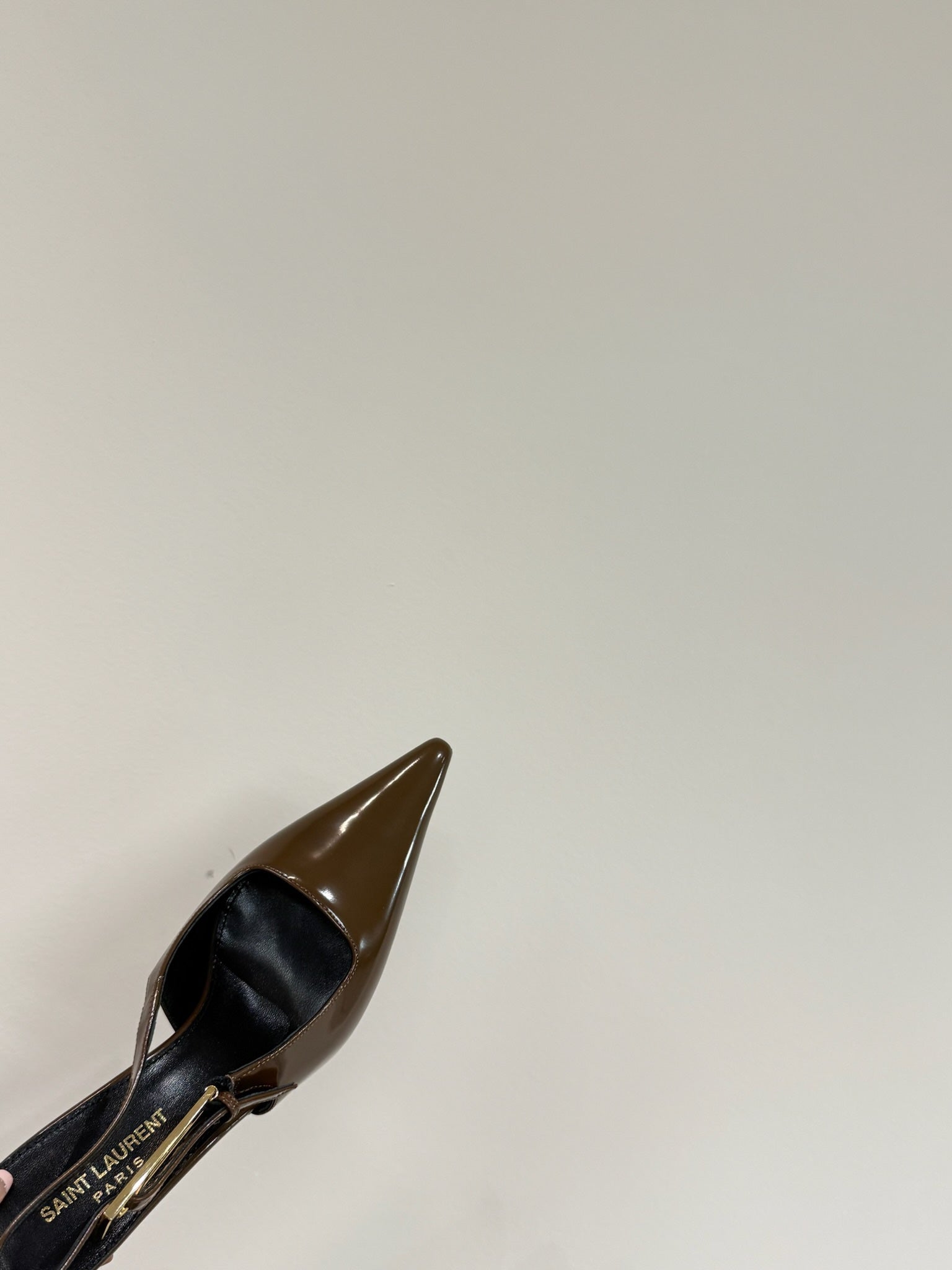 LEE SLINGBACK PUMPS 75 MM IN COFFEE BROWN PATENT CALFSKIN